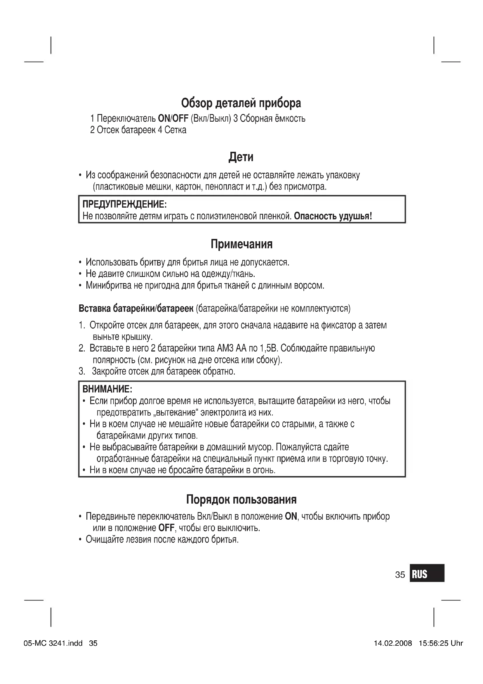 Скачайте инструкцию для вашего электрический эпилятор в формате PDF бесплатно! Найдите своё руководство MC 3241 - CLATRONIC и возьмите своё электронное устройство обратно в руки. На этой странице опубликованы все документы, необходимые для использования вашего устройства. MC 3241 бренда CLATRONIC.