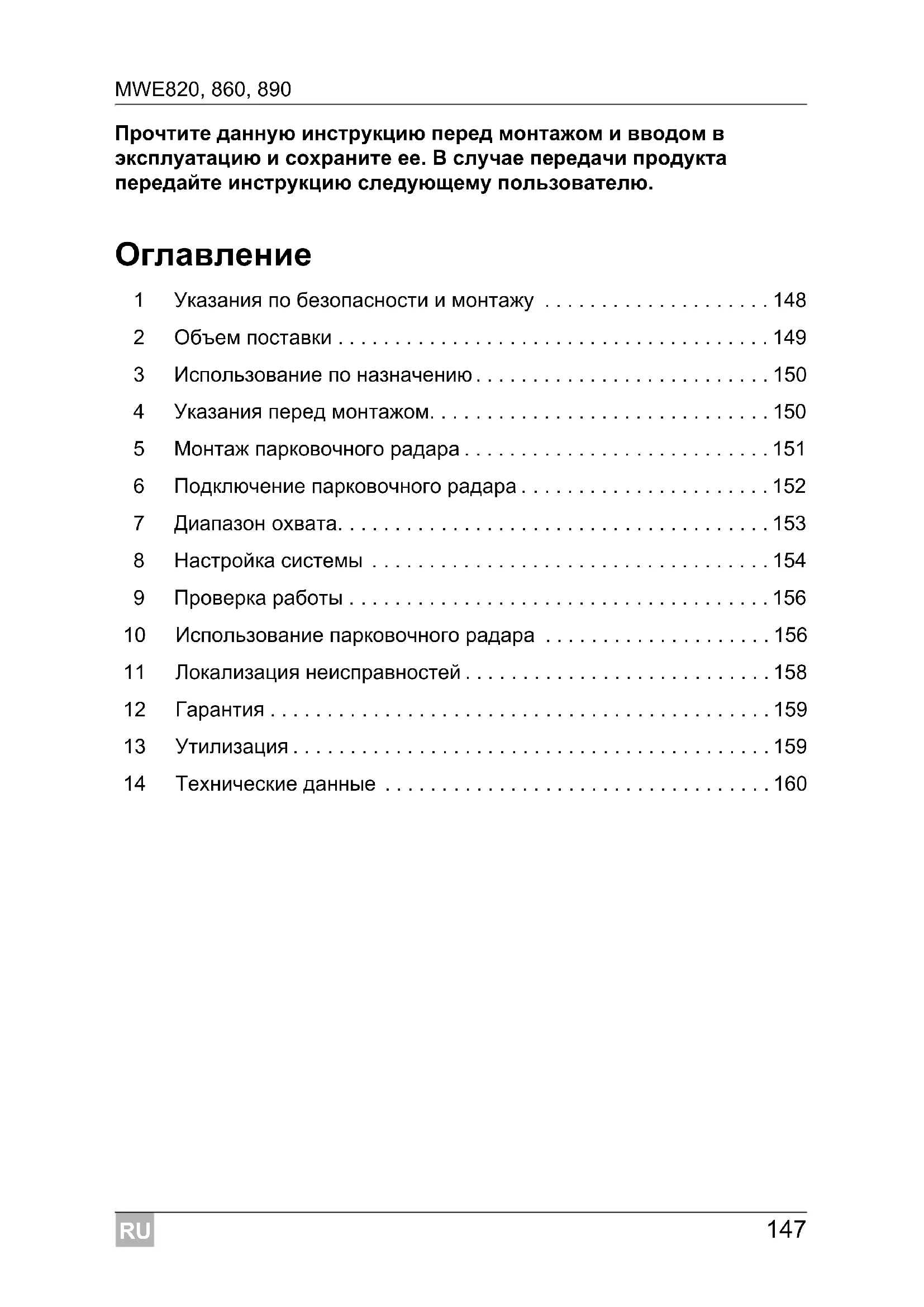Система более не работает надежно, если неисправен один или несколько датчиков.RU MWE820, 860, 890 Гарантия