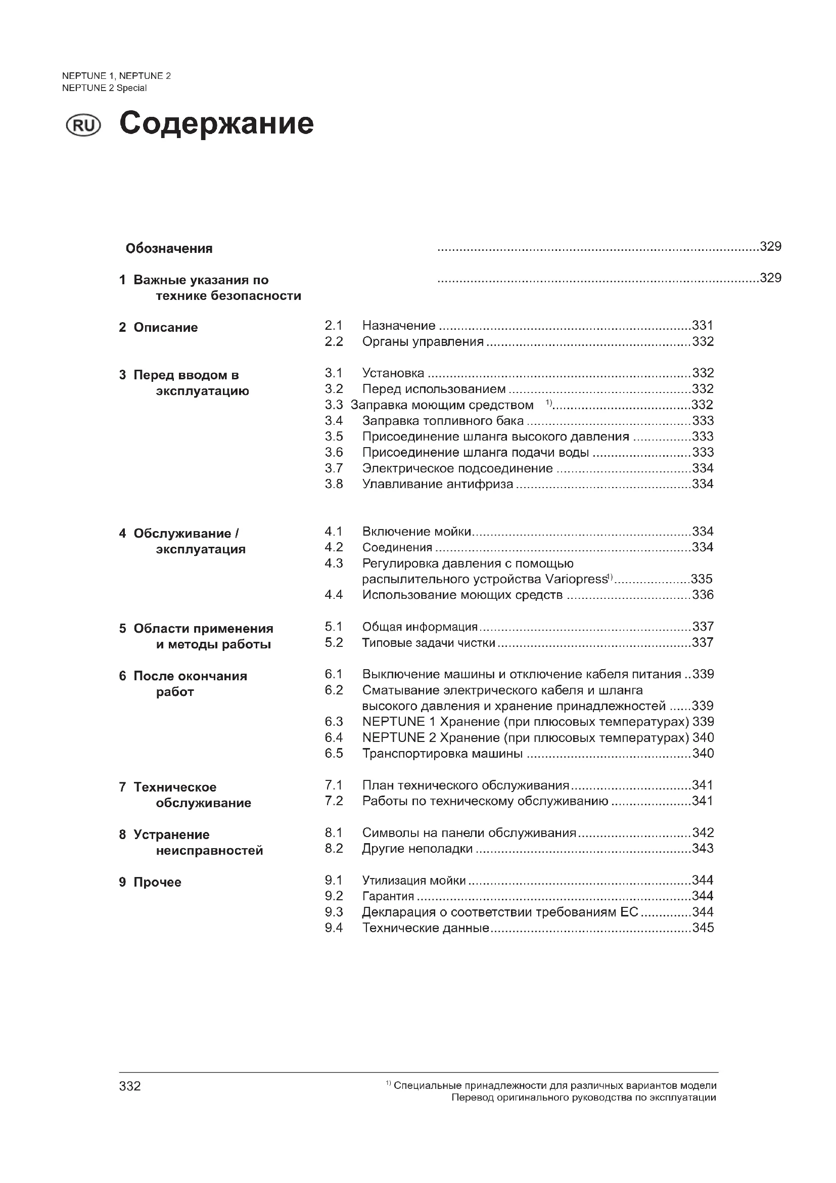 Специальные принадлежности для различных вариантов модели Перевод оригинального руководства по эксплуатации NEPTUNE 1, NEPTUNE 2 NEPTUNE 2 Special 7 Техническое обслуживание