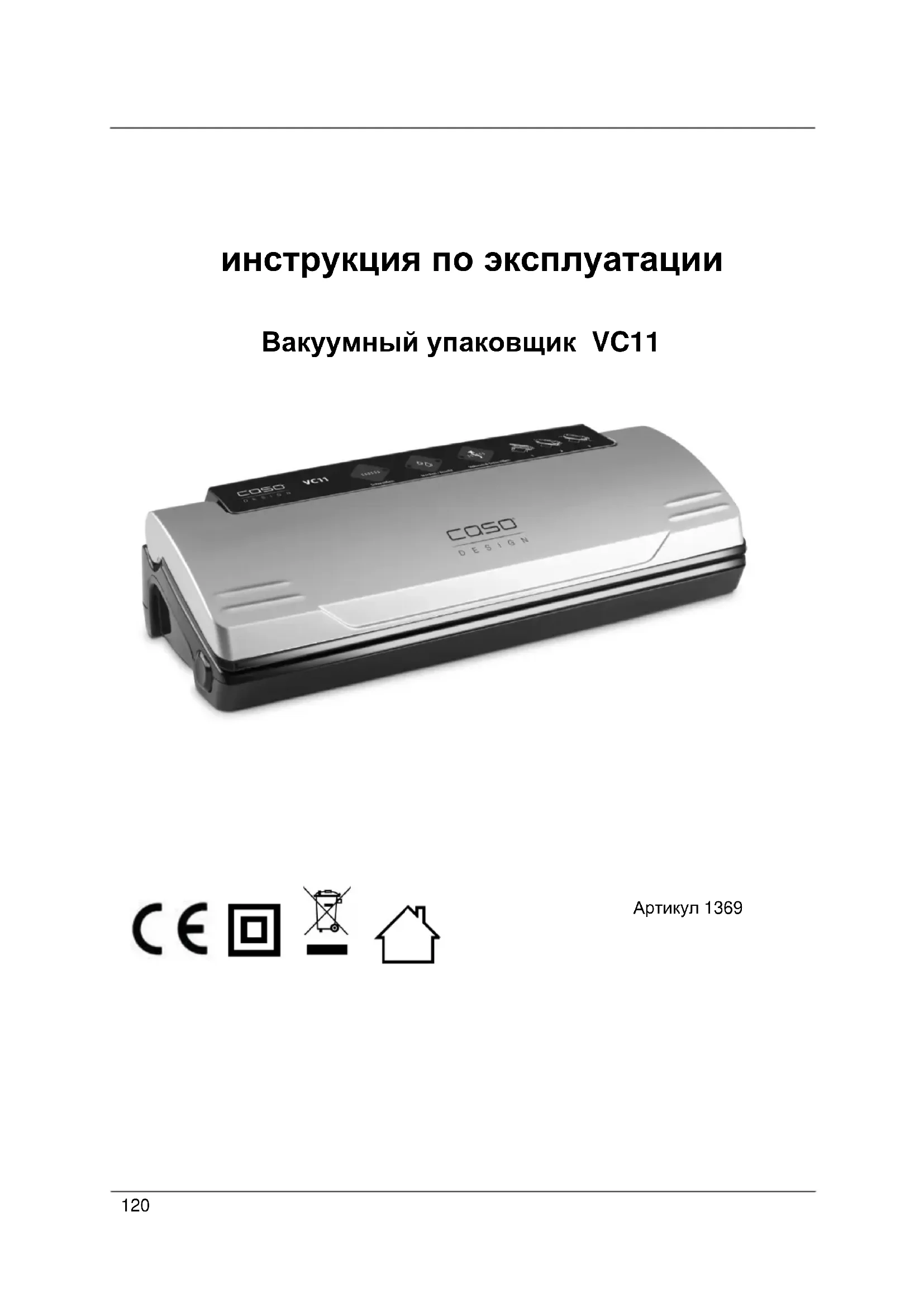 Скачайте инструкцию для вашего вакуумные упаковочные машины в формате PDF бесплатно! Найдите своё руководство VC11 - CASO и возьмите своё электронное устройство обратно в руки. На этой странице опубликованы все документы, необходимые для использования вашего устройства. VC11 бренда CASO.
