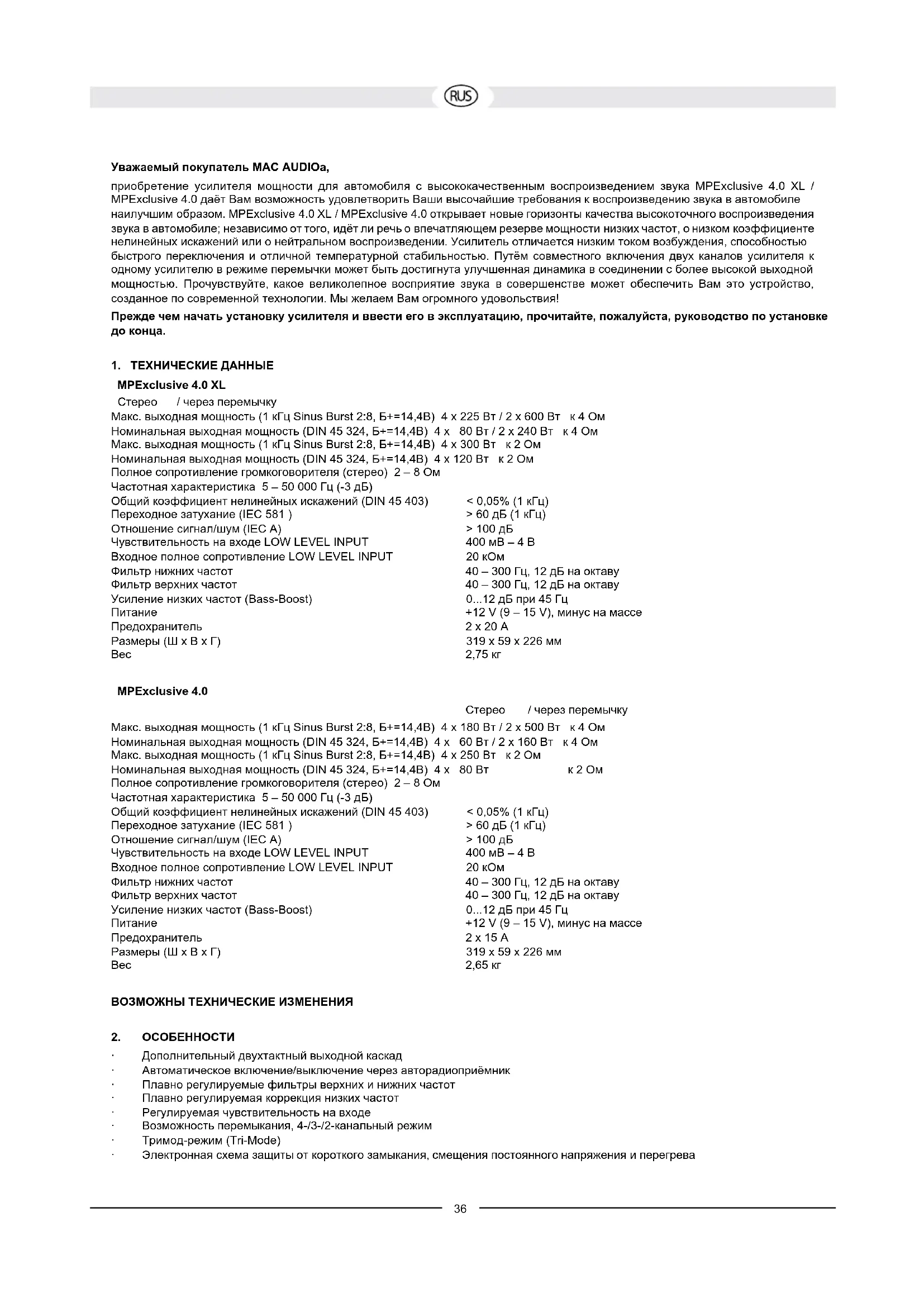 Найдите руководство к устройству бесплатно MPExclusive 4.0 MAC AUDIO в формате PDF.