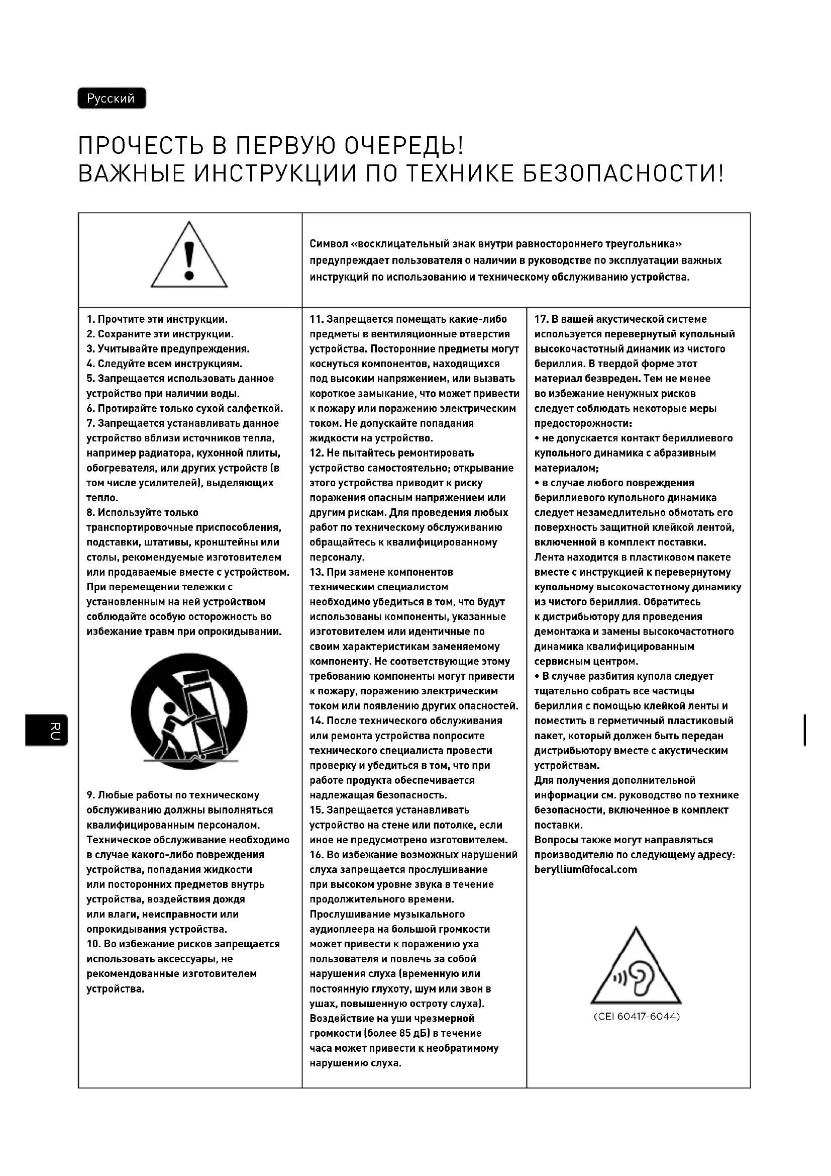 Вопросы также могут направляться производителю по следующему адресу: beryllium@focal.com (CEI 60417-6044)45 SOPRA