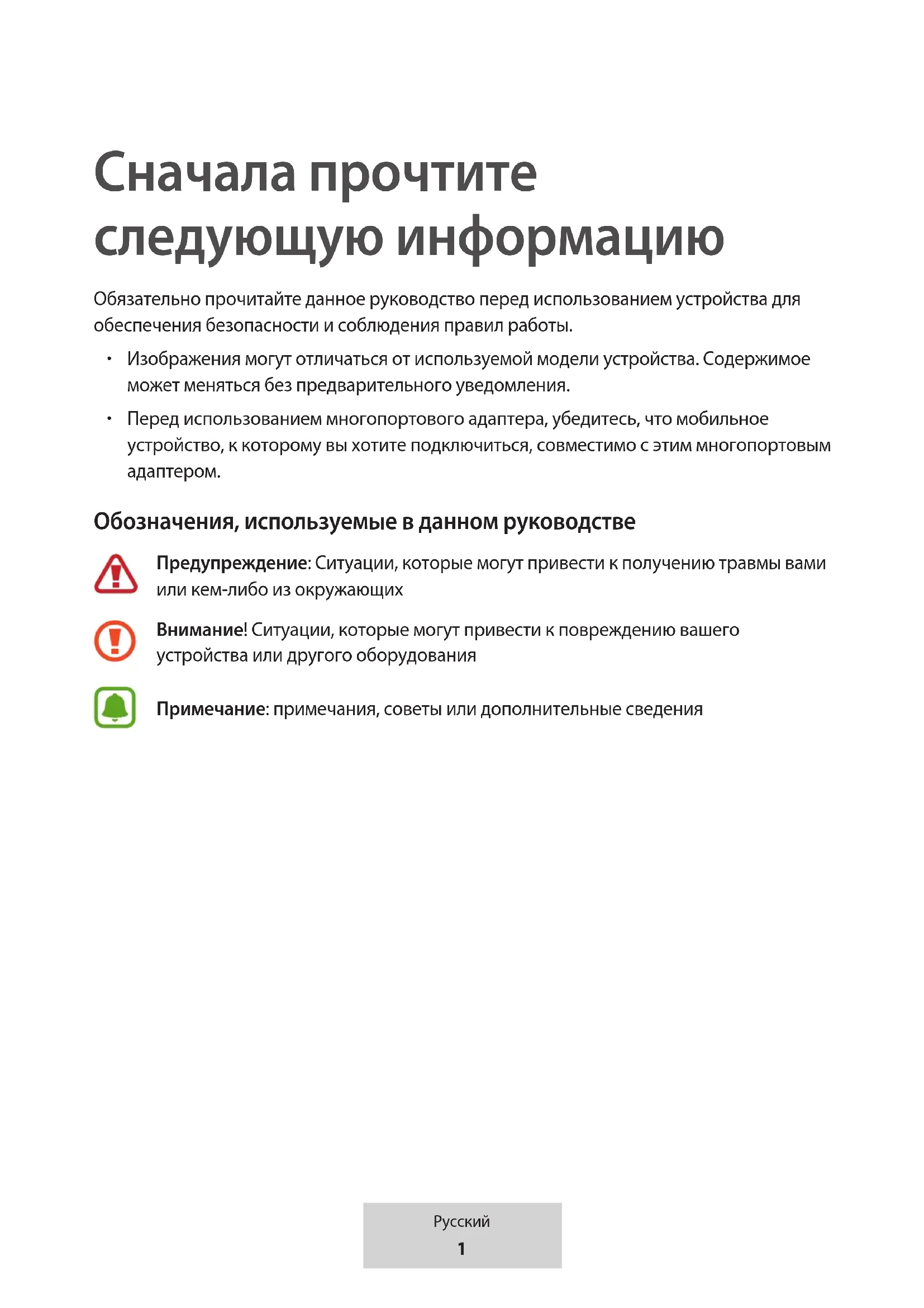 Сначала прочтите следующую информацию Обязательно прочитайте данное руководство перед использованием устройства для обеспечения безопасности и соблюдения правил работы.