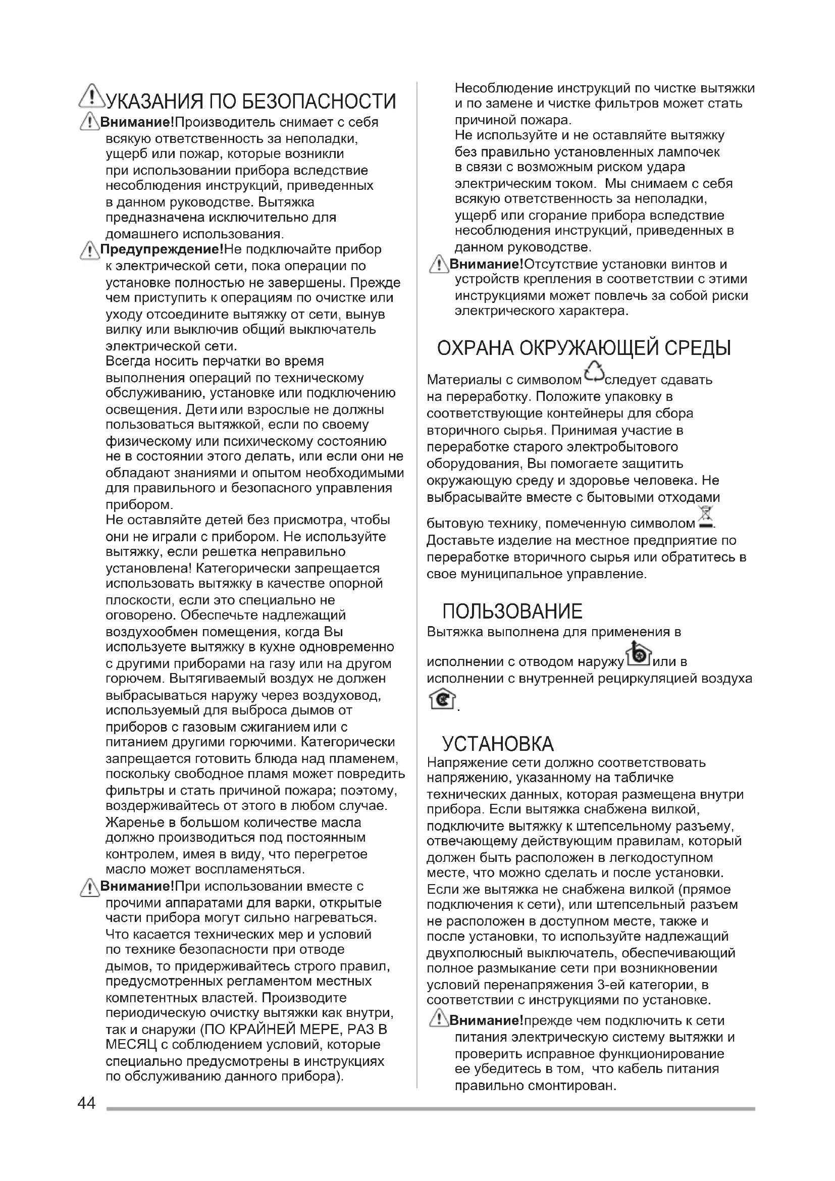 Вытяжка Инструкция по эксплуатации 44