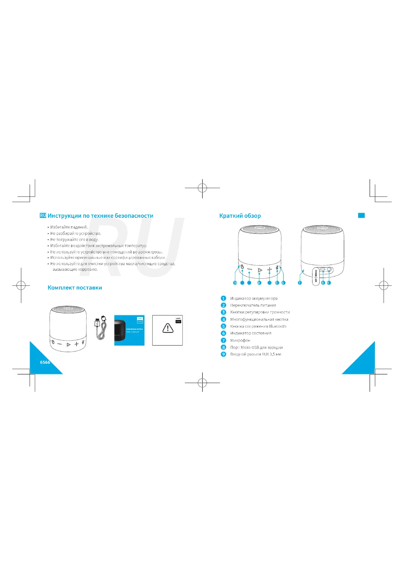 - Не используйте для очистки устройства масла/чистящие средства, вызывающие коррозию. Комплект поставки Soundcore mini 2User's manual67 68 RU RU Использование Soundcore mini 2