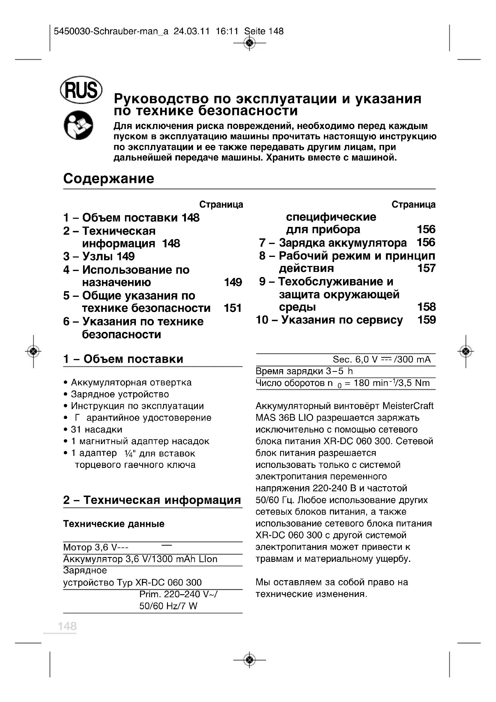 MAS 36B LIO - шуруповерт Meister Craft - Бесплатное руководство пользователя