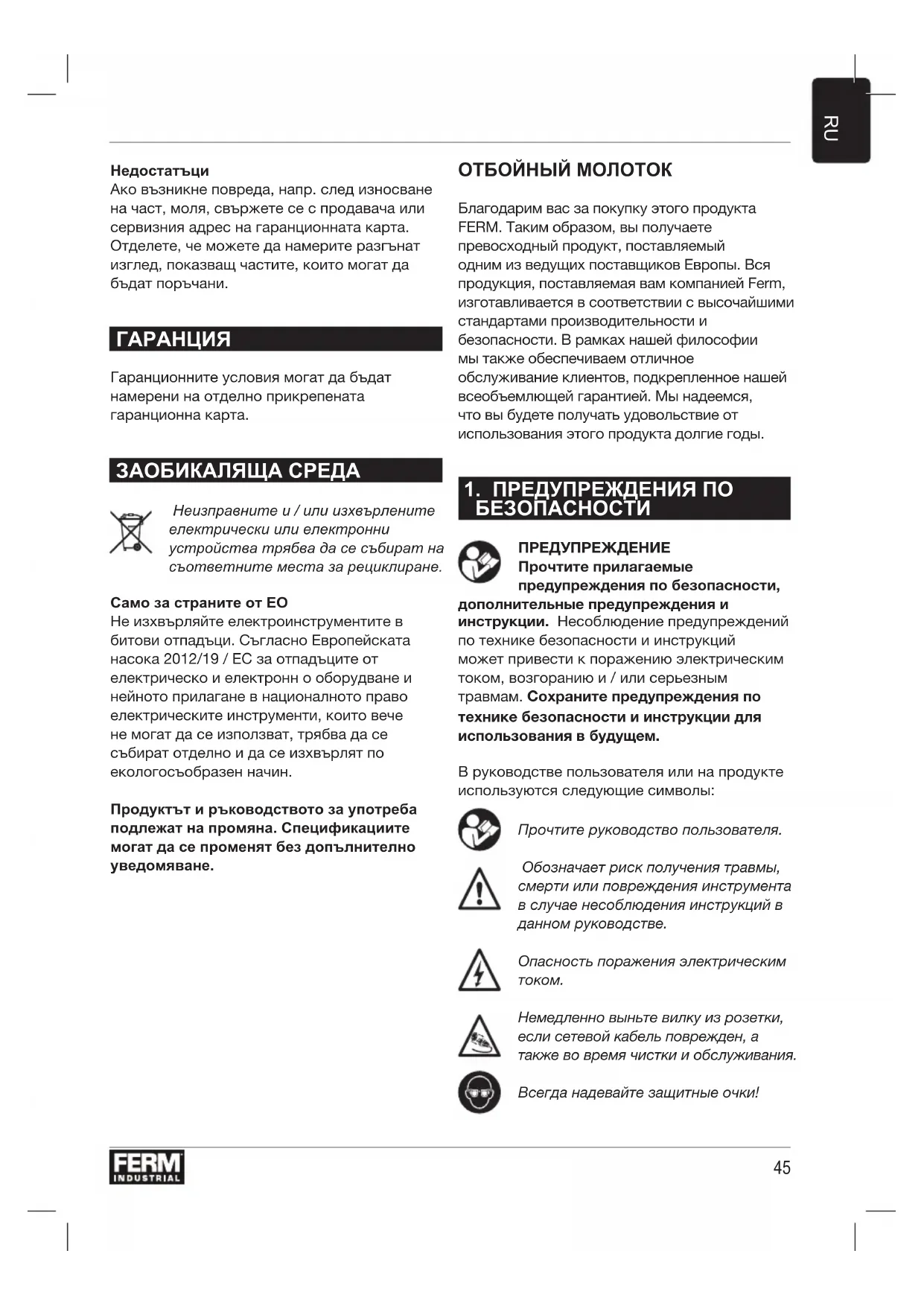 Скачайте инструкцию для вашего молоток в формате PDF бесплатно! Найдите своё руководство HDM1040P - Ferm и возьмите своё электронное устройство обратно в руки. На этой странице опубликованы все документы, необходимые для использования вашего устройства. HDM1040P бренда Ferm.