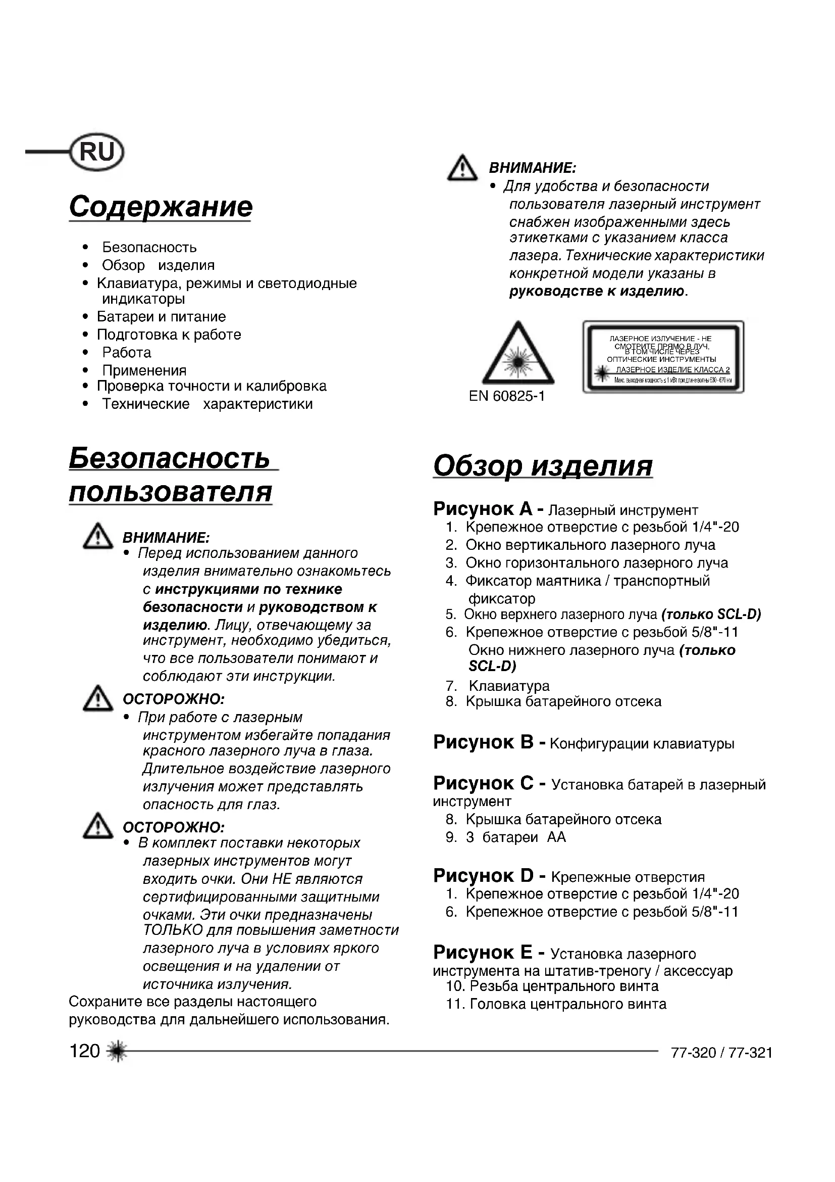 - Проверку калибровки рекомендуется выполнять перед первым использованием124 77-320 / 77-321 лазерного инструмента, а также периодически в ходе его последующей эксплуатации.