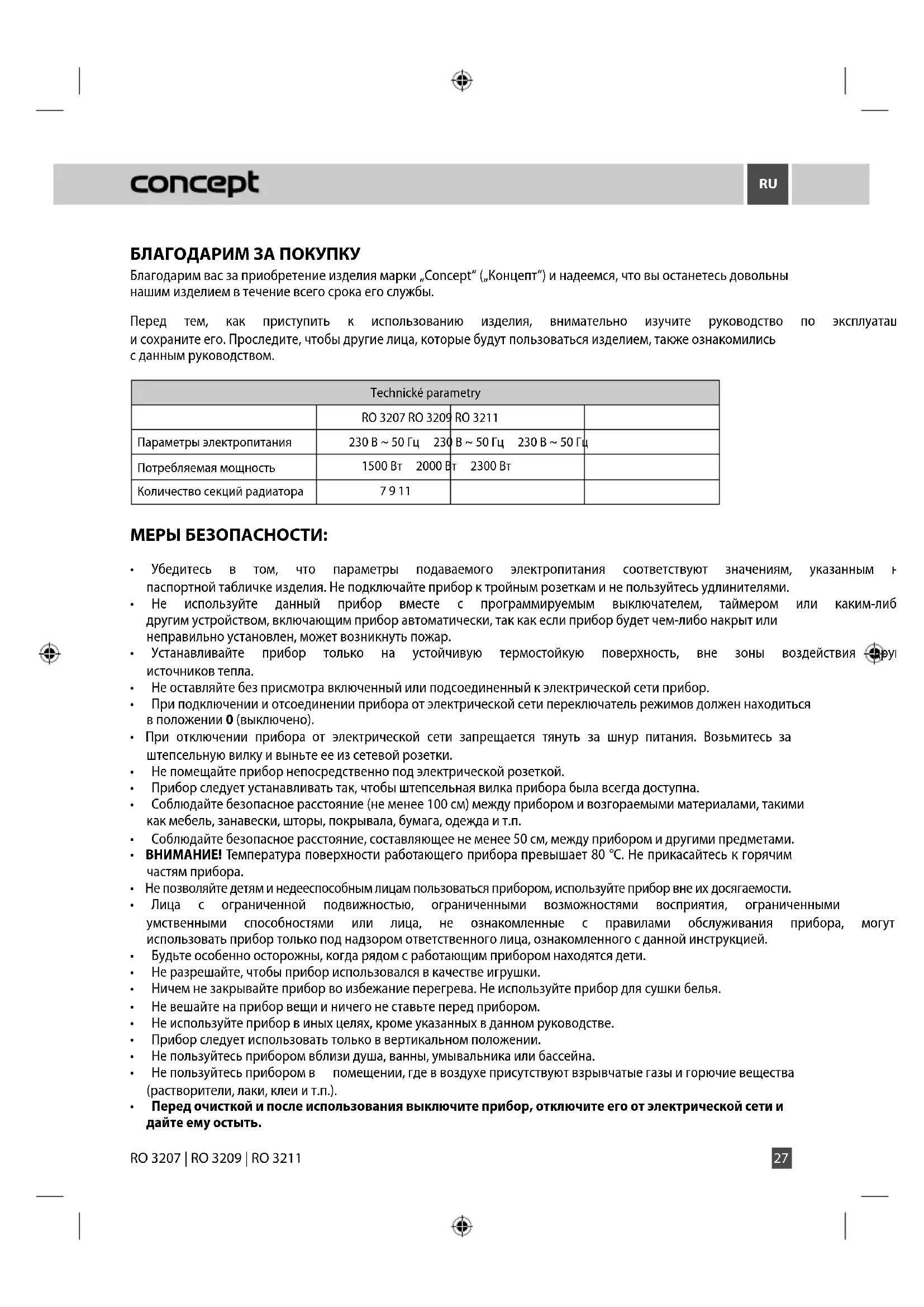 РУКОВОДСТВО ПОЛЬЗОВАТЕЛЯ RO3211 Concept