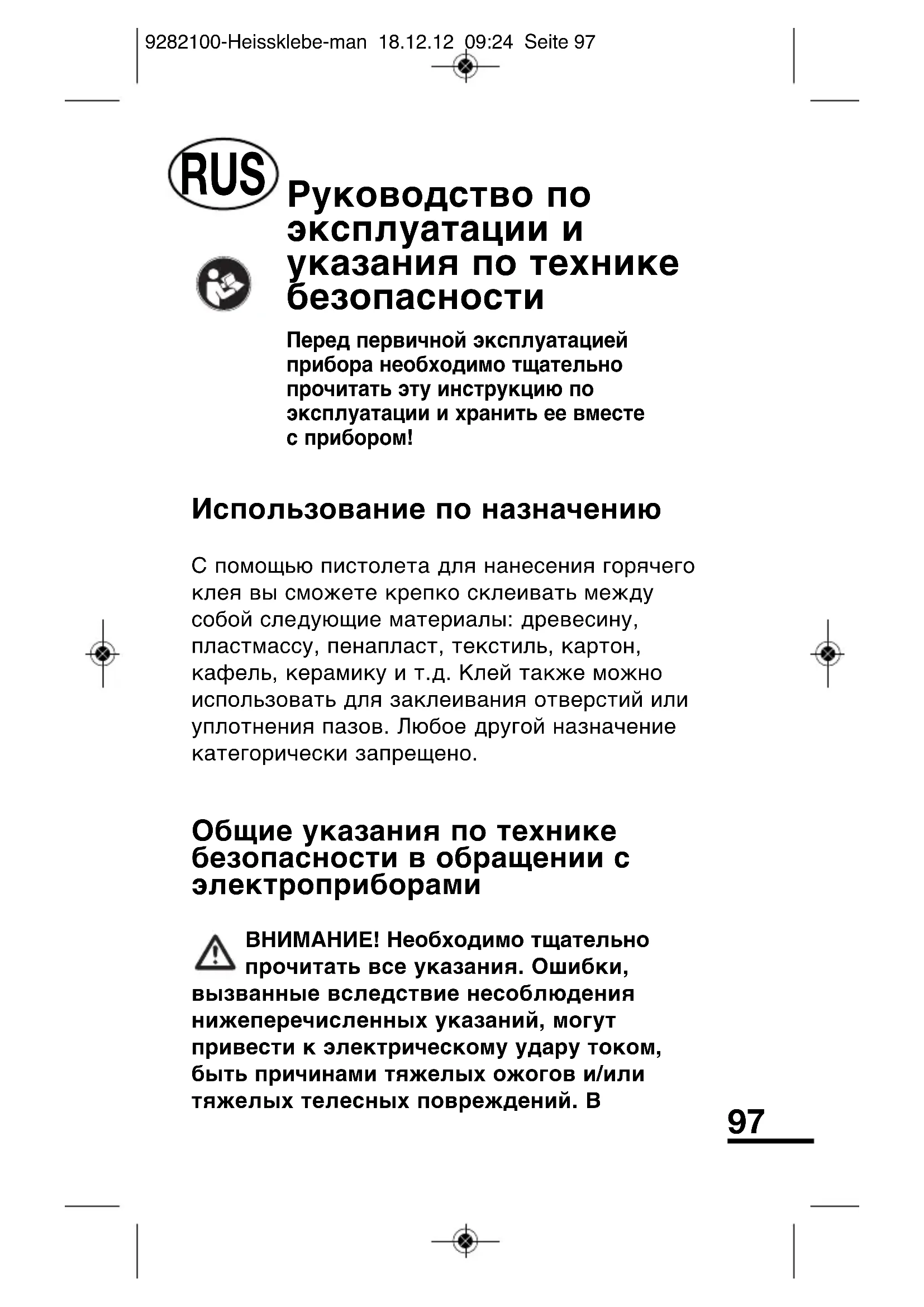 BHIMAHNE! Heo6xodmo TsaTeNbHO npoHTaB BCE yKa3aHn. Oun6Kn, Bbl3BaHHbIe BCJeDCTBne HecO6JIOpDeHN HJXKepeuNCJIeHHbIX yKa3aHn, MOryT npNBecTN K 3JIeKTPnueckOMy ydApY TOKOM, 6bITb pInuHaMn TJaKeJIbIX OXKOrOB n/INn TJaKeJIbIX TeLeChbIX NOBpeJdeHn. B
