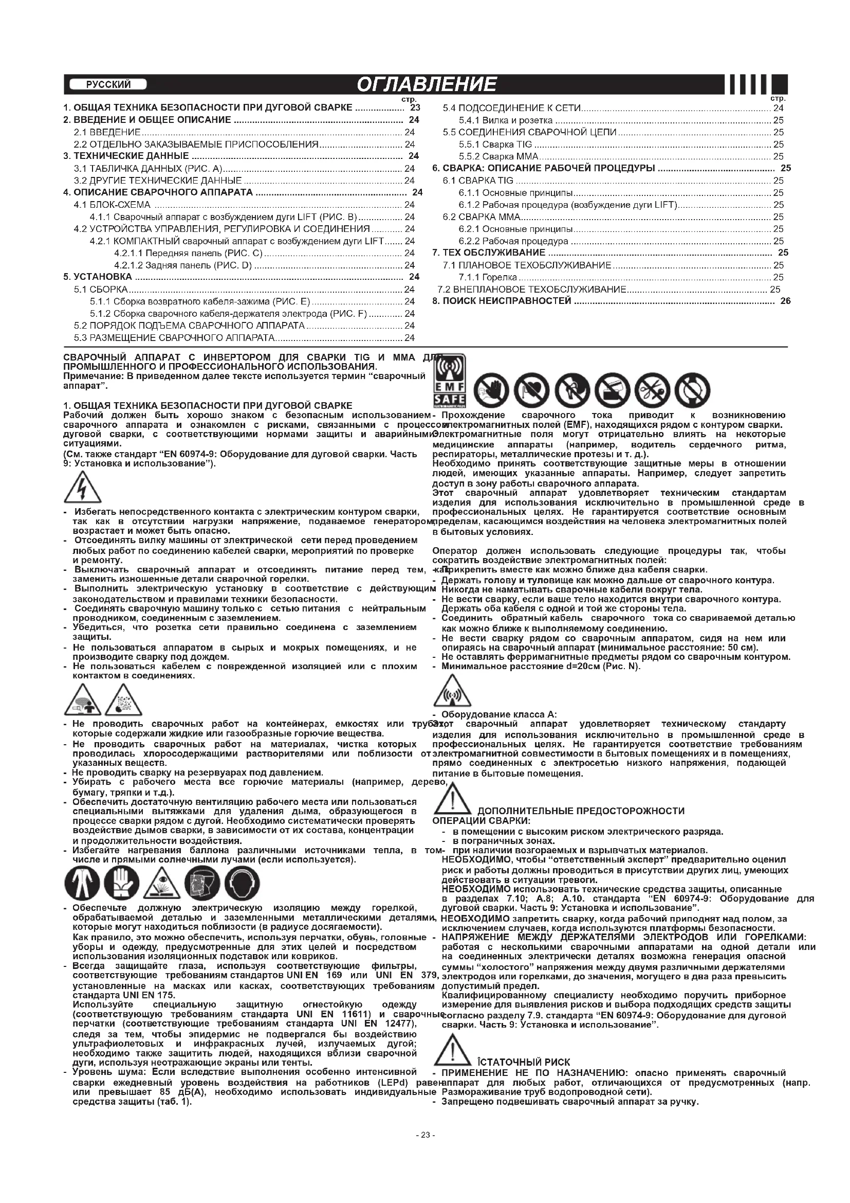 4.2.1 КОМПАКТНЫЙ сварочный аппарат с возбуждением дуги LIFT ....... 24