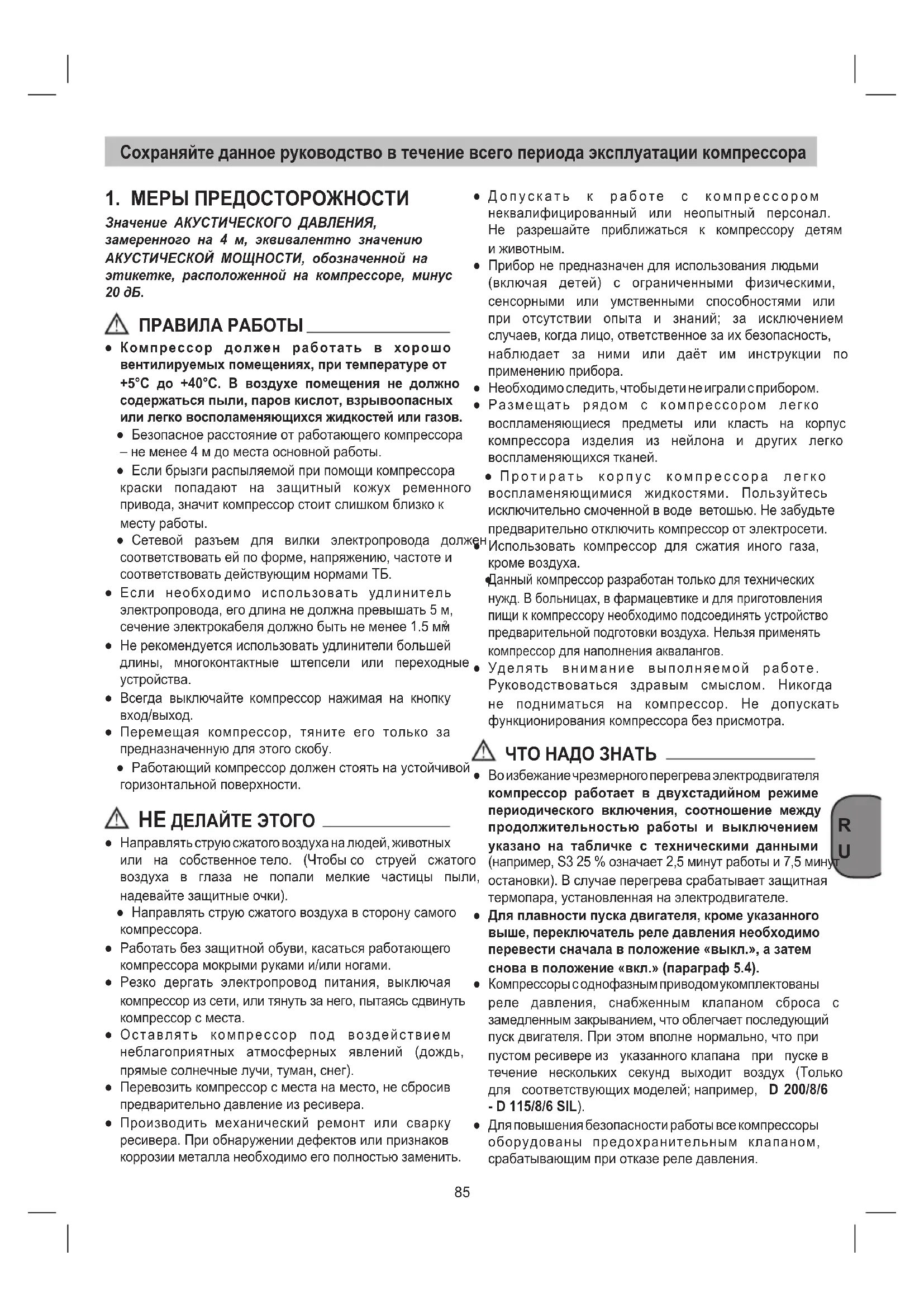 Сохраняйте данное руководство в течение всего периода эксплуатации компрессора
