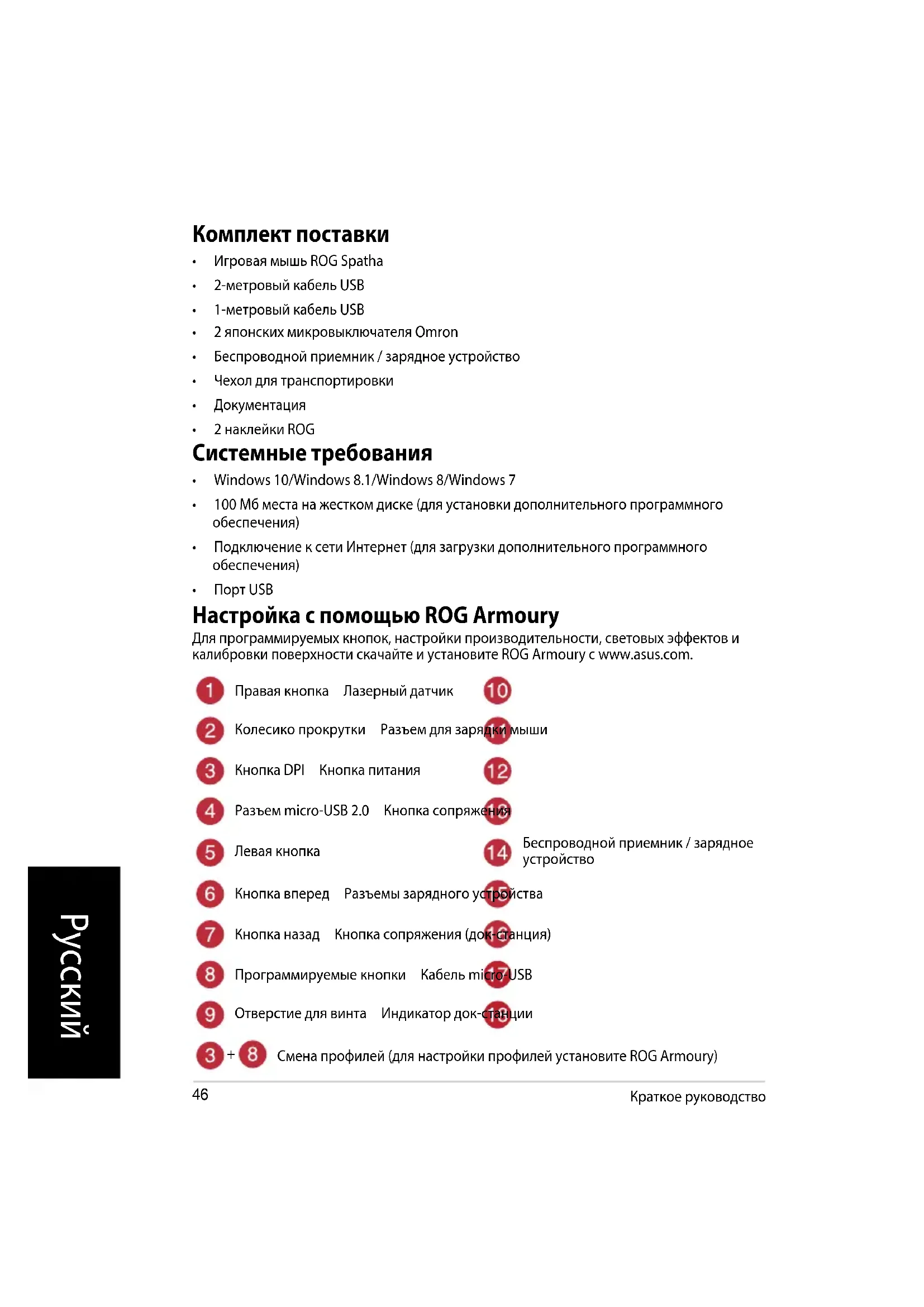 РУКОВОДСТВО ПОЛЬЗОВАТЕЛЯ ROG Spatha ASUS