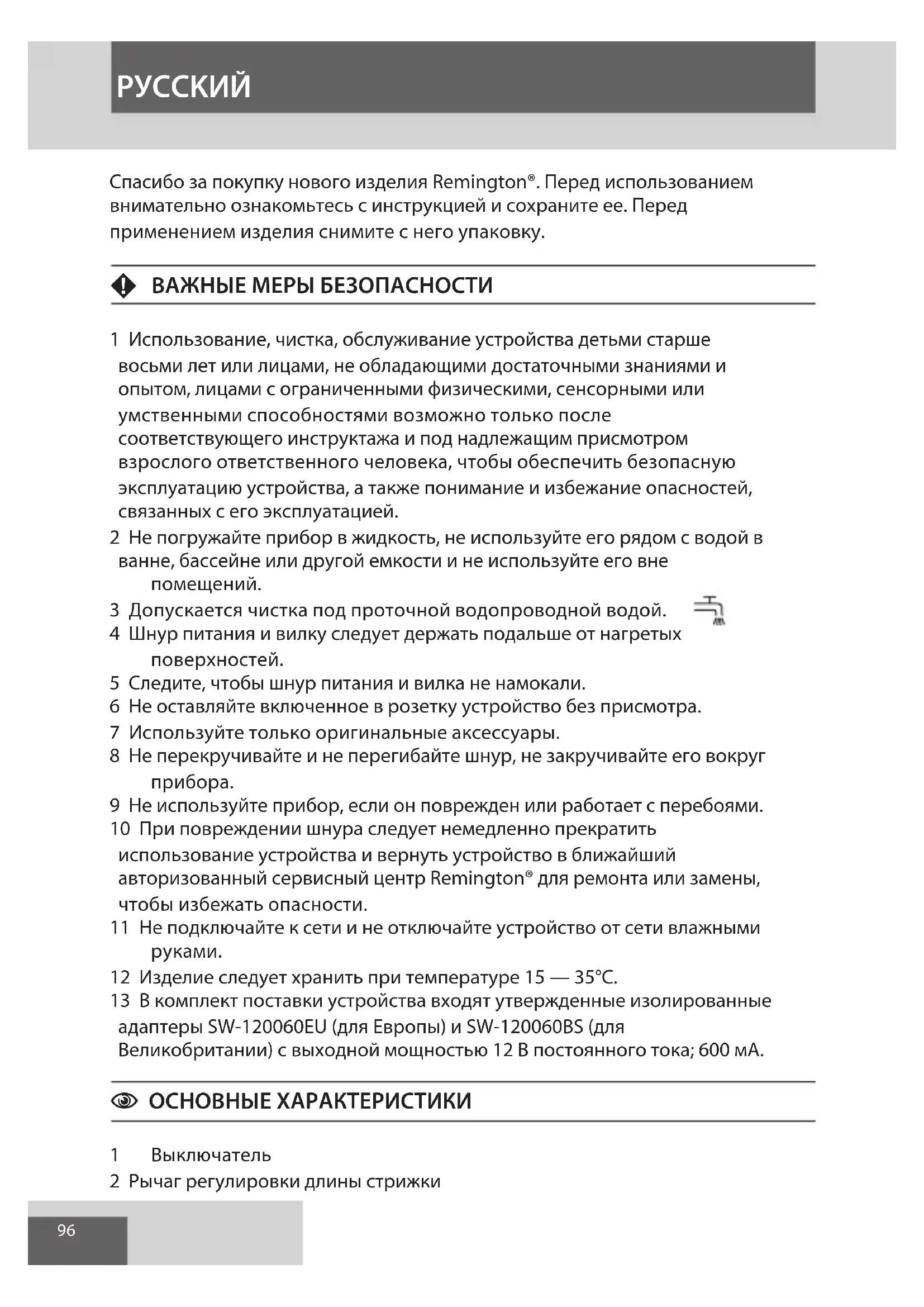 Спасибо за покупку нового изделия Remington®. Перед использованием внимательно ознакомьтесь с инструкцией и сохраните ее. Перед применением изделия снимите с него упаковку.