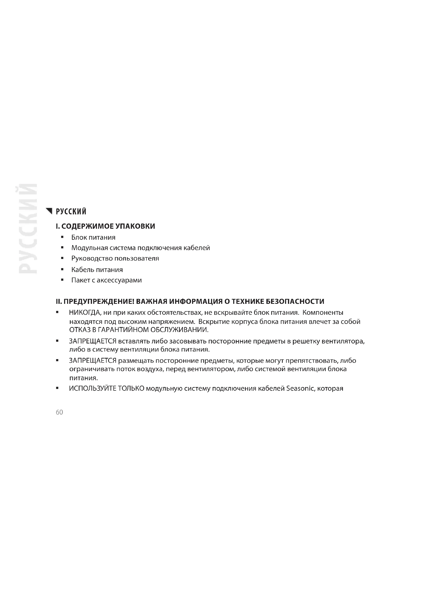 РУКОВОДСТВО ПОЛЬЗОВАТЕЛЯ Focus Plus Platinum 550 SEASONIC