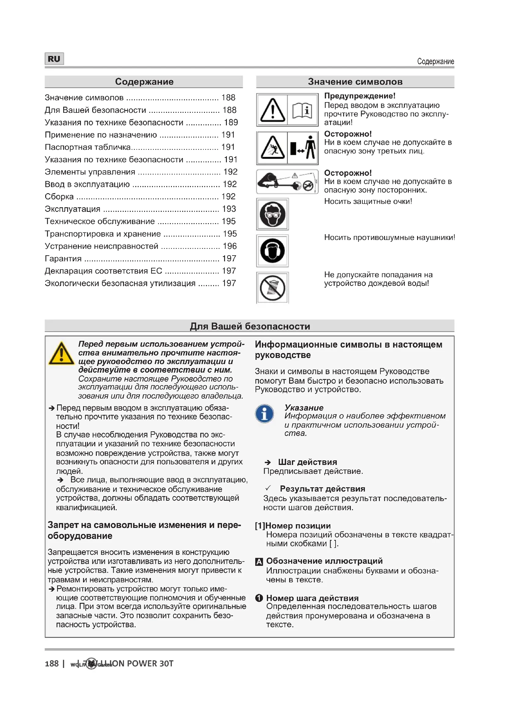 РУКОВОДСТВО ПОЛЬЗОВАТЕЛЯ PWR 30T Wolf Garten