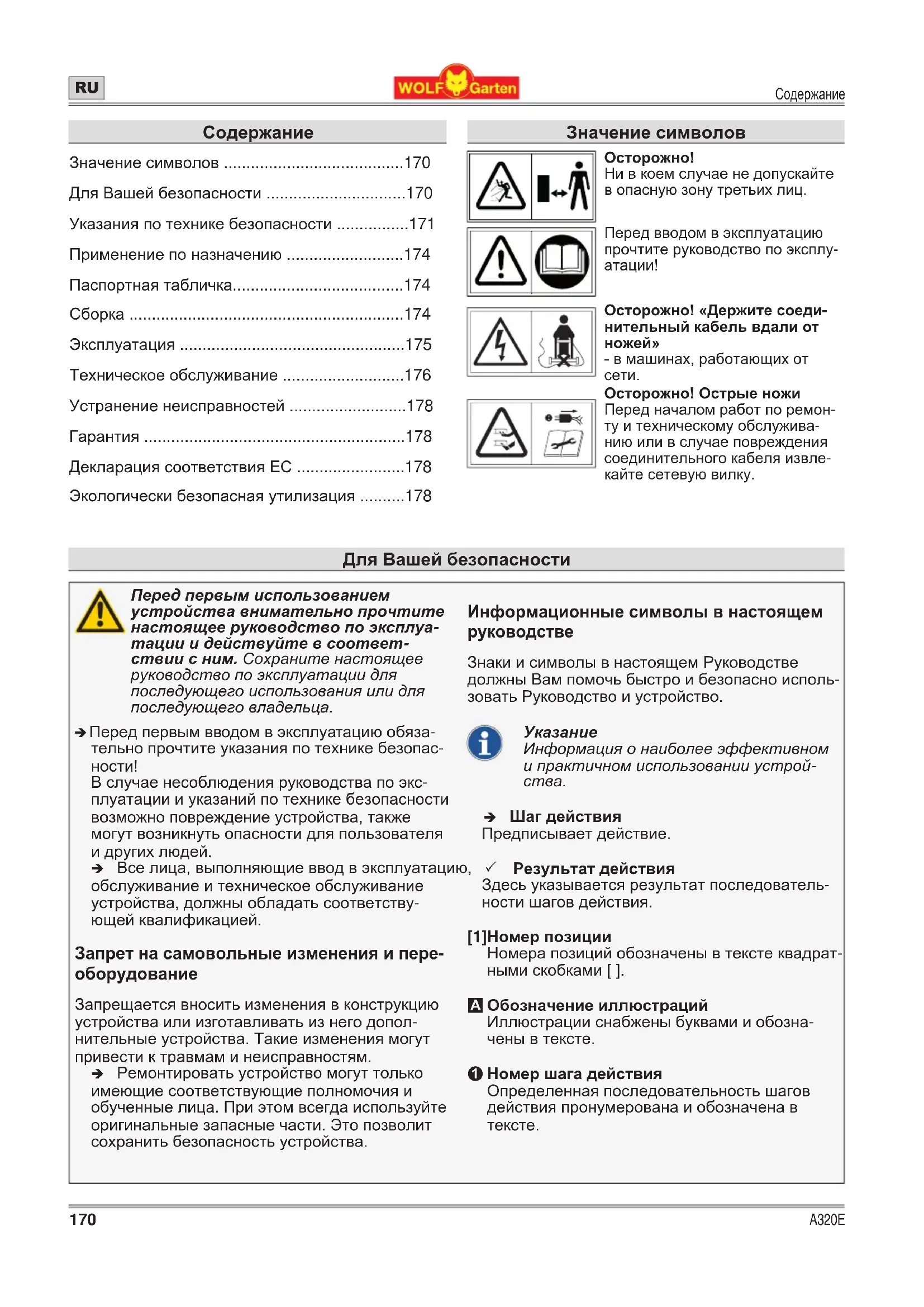 РУКОВОДСТВО ПОЛЬЗОВАТЕЛЯ A 320 E Wolf Garten