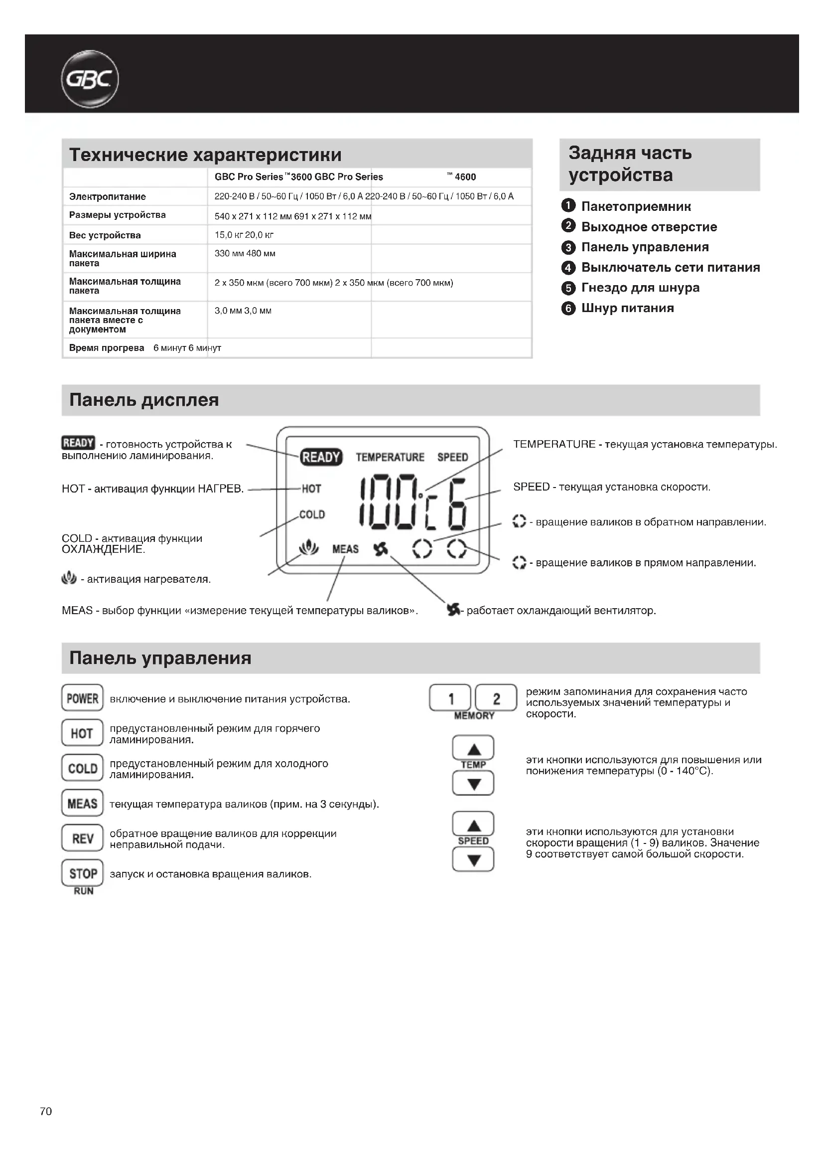 Скачайте инструкцию для вашего ламинирующая машина в формате PDF бесплатно! Найдите своё руководство Proseries 3600 - GBC и возьмите своё электронное устройство обратно в руки. На этой странице опубликованы все документы, необходимые для использования вашего устройства. Proseries 3600 бренда GBC.