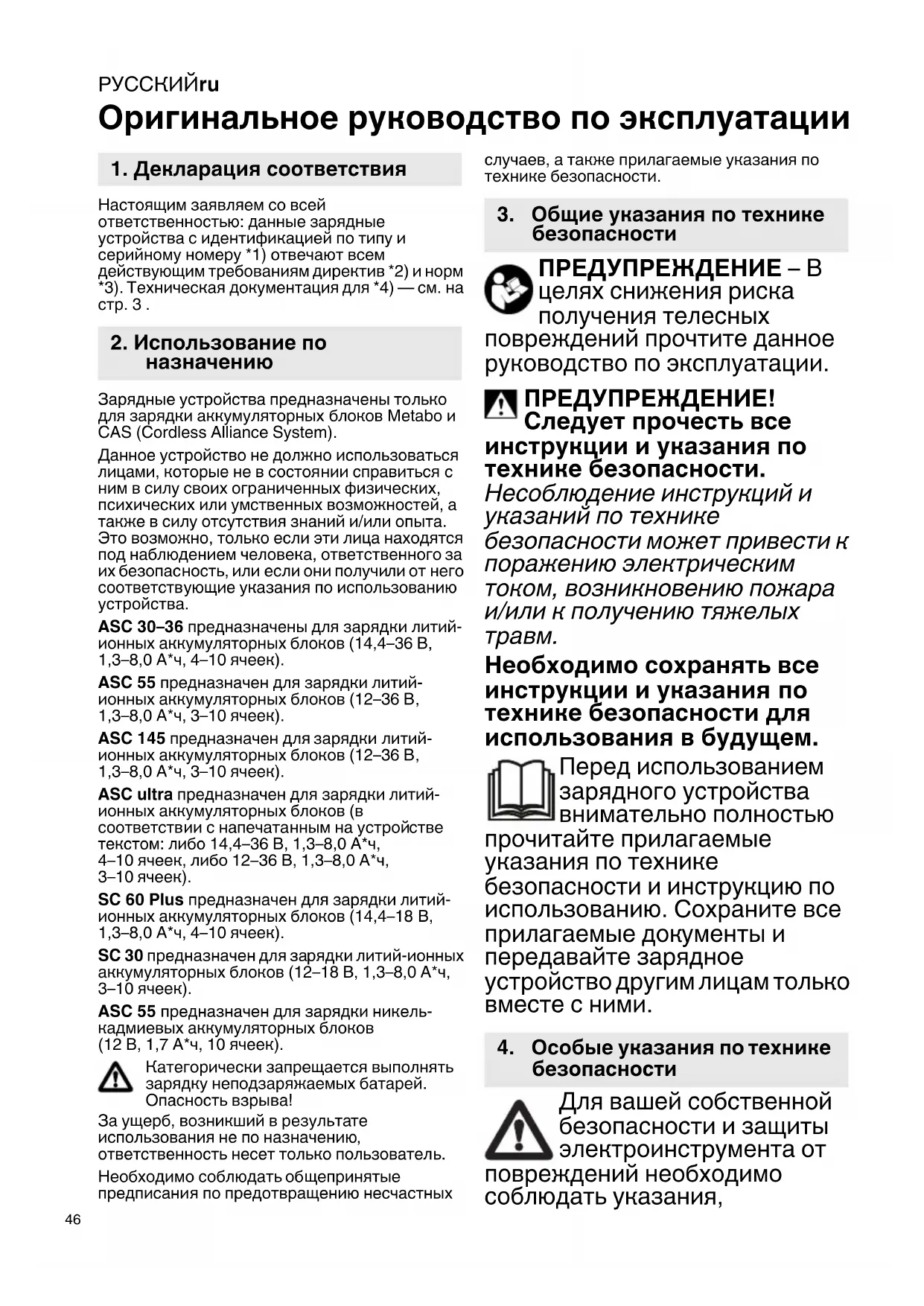 Найдите руководство к устройству бесплатно ASC 3036 METABO в формате PDF.