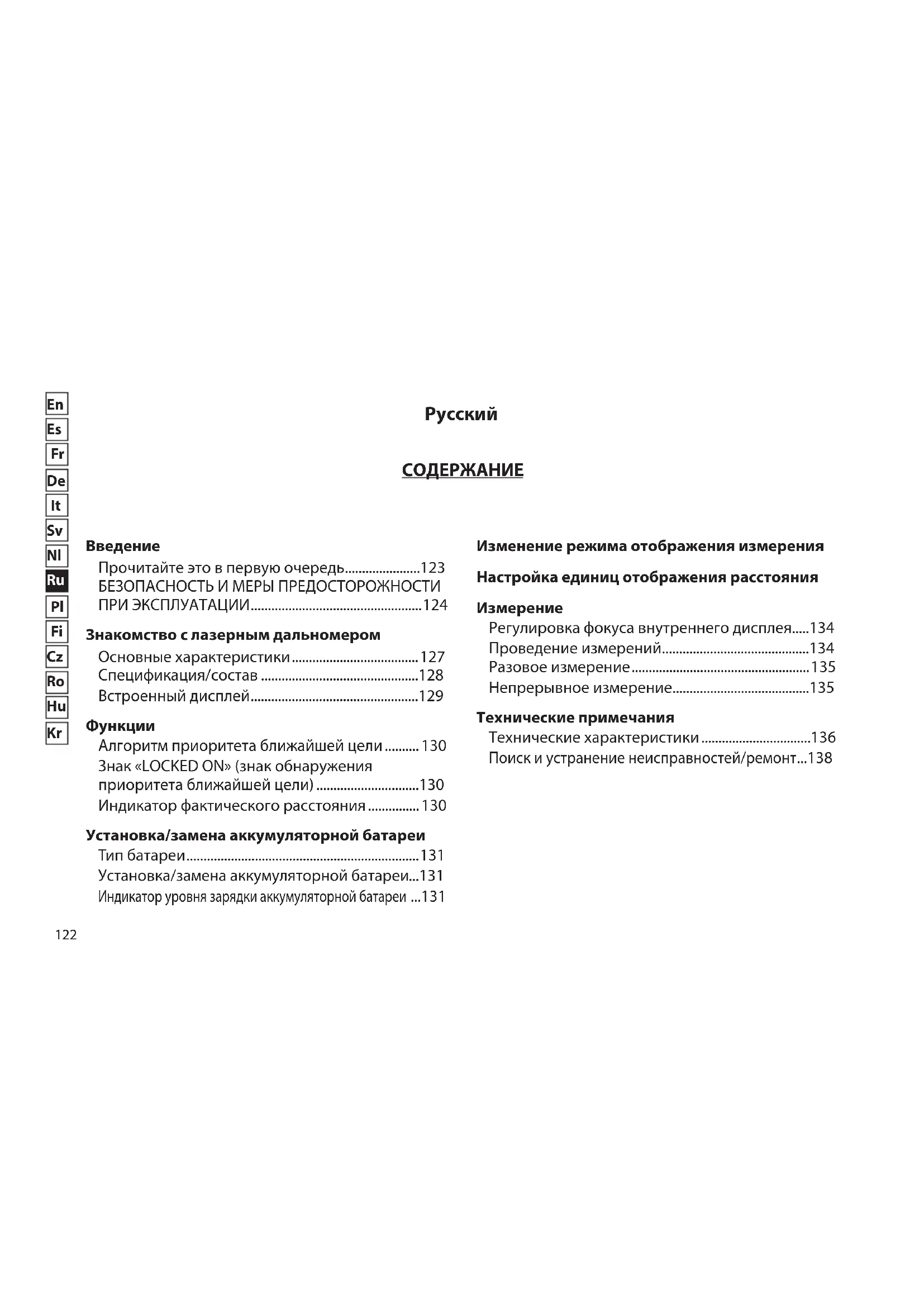 - Настройка сохраняется даже после выключения лазерного дальномера.134