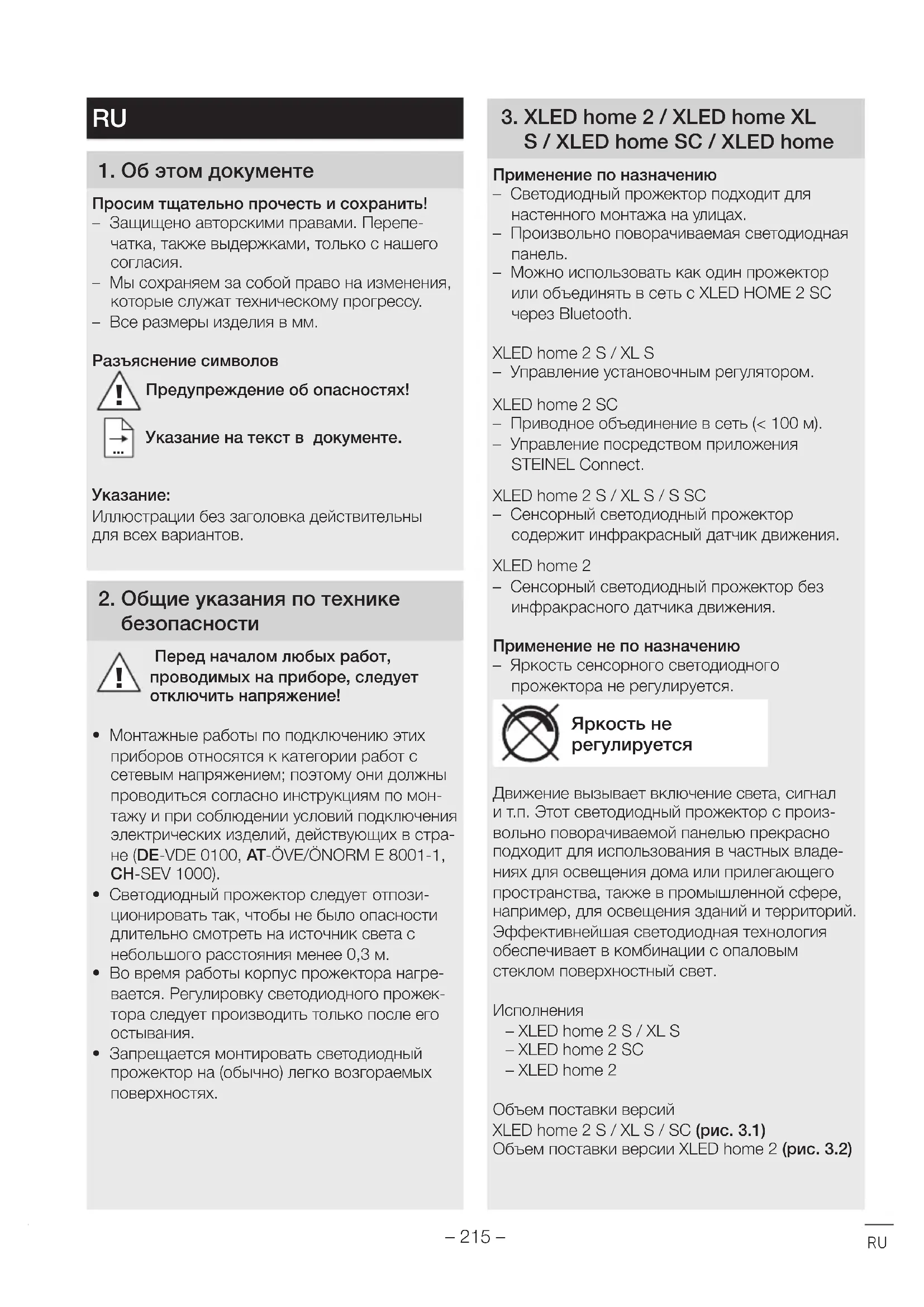 РУКОВОДСТВО ПОЛЬЗОВАТЕЛЯ XLED Home 2 SC STEINEL