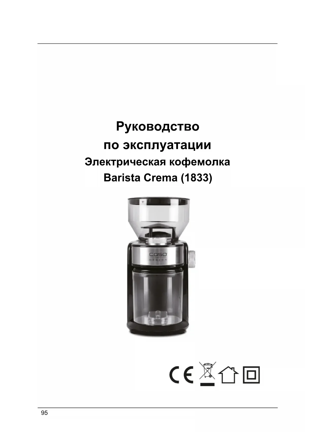 Руководство по эксплуатации Электрическая кофемолка Barista Crema (1833)96 62 Руководство по эксплуатации
