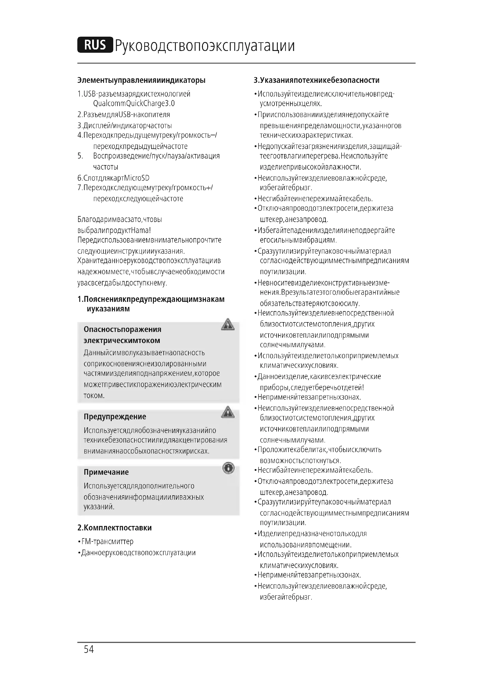 Скачайте инструкцию для вашего FM передатчик в формате PDF бесплатно! Найдите своё руководство 00201631 - HAMA и возьмите своё электронное устройство обратно в руки. На этой странице опубликованы все документы, необходимые для использования вашего устройства. 00201631 бренда HAMA.
