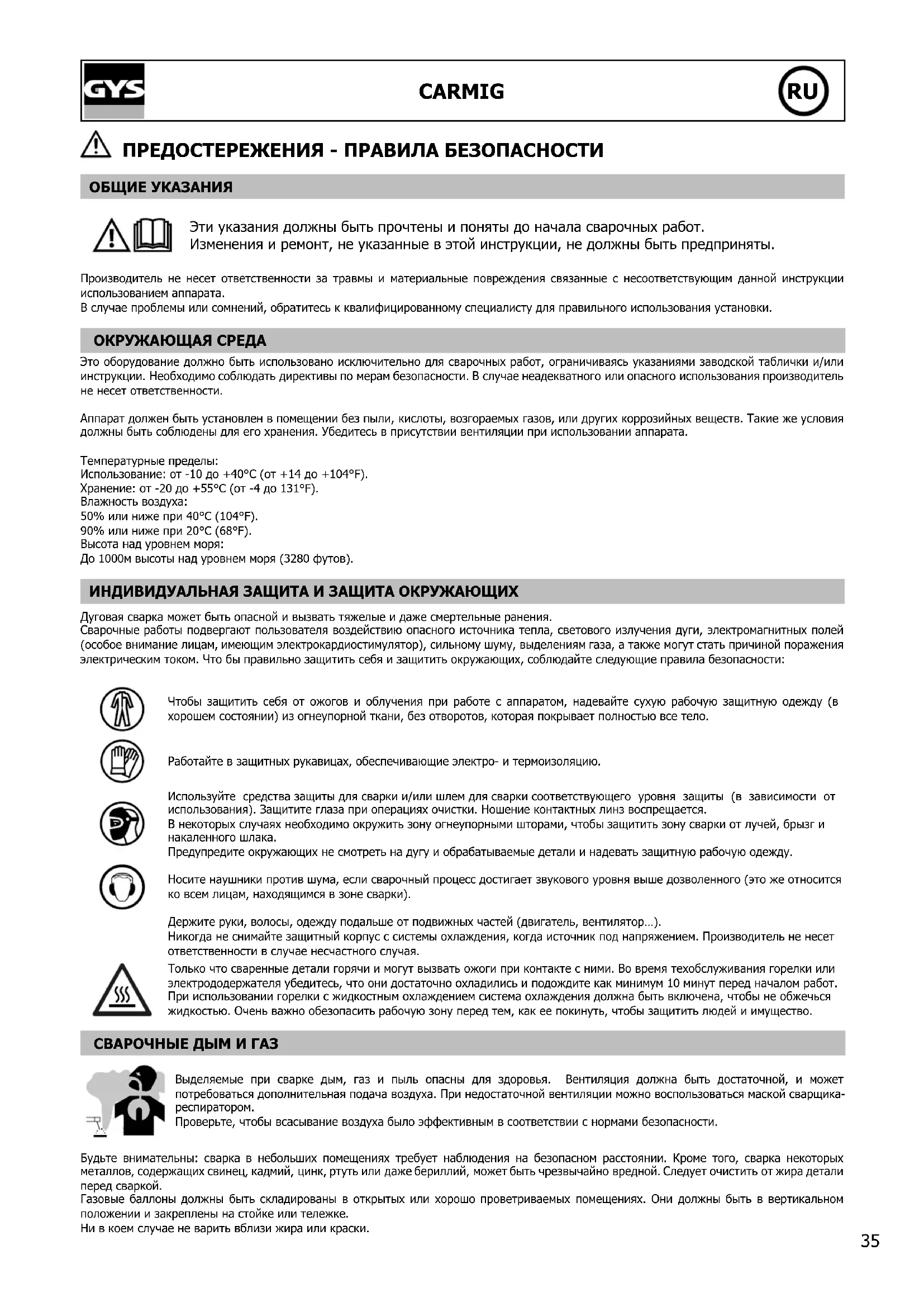 РУКОВОДСТВО ПОЛЬЗОВАТЕЛЯ Carmig GYS
