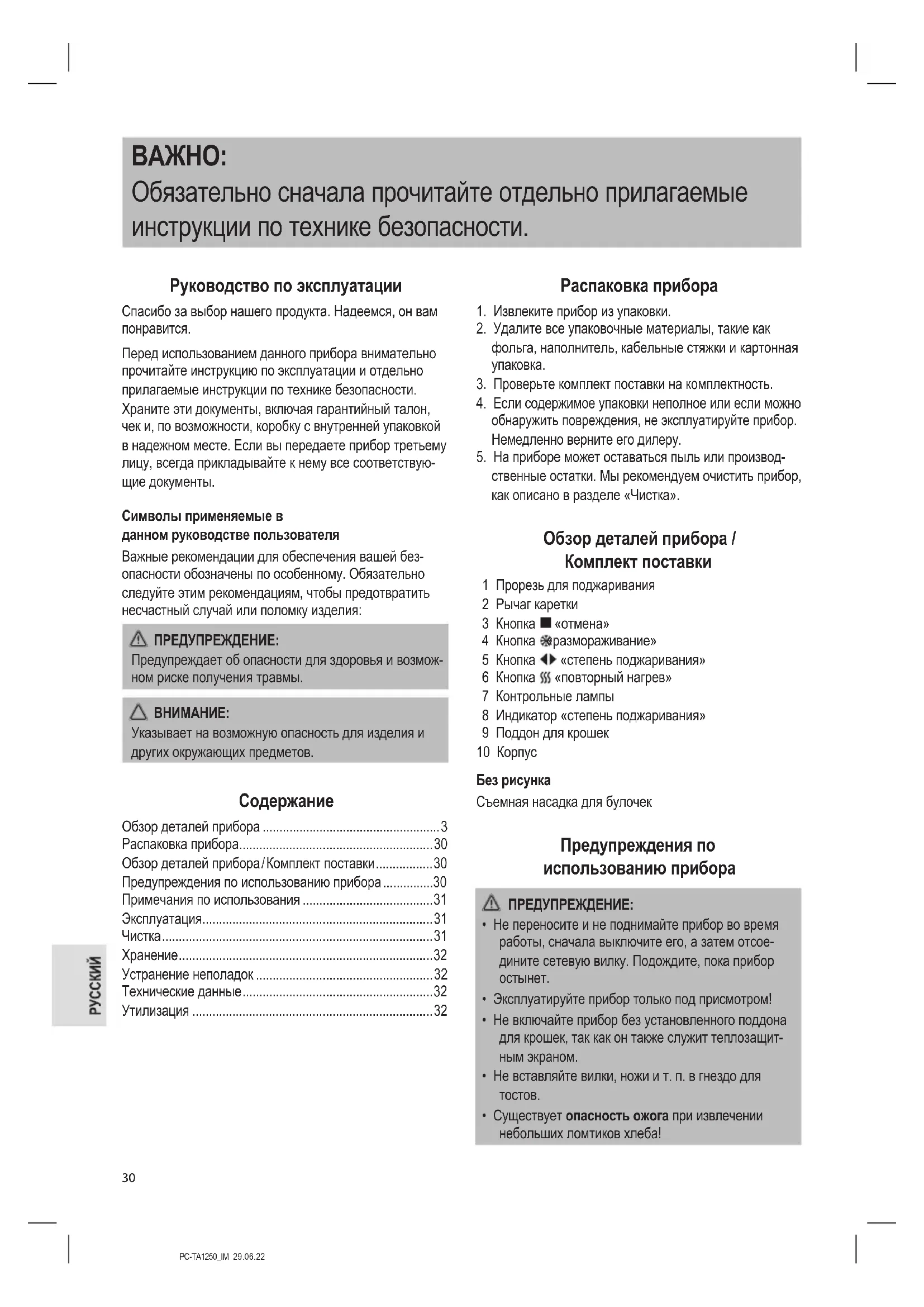 - Существует опасность ожога при извлечении небольших ломтиков хлеба!PC-TA1250_IM 29.06.22