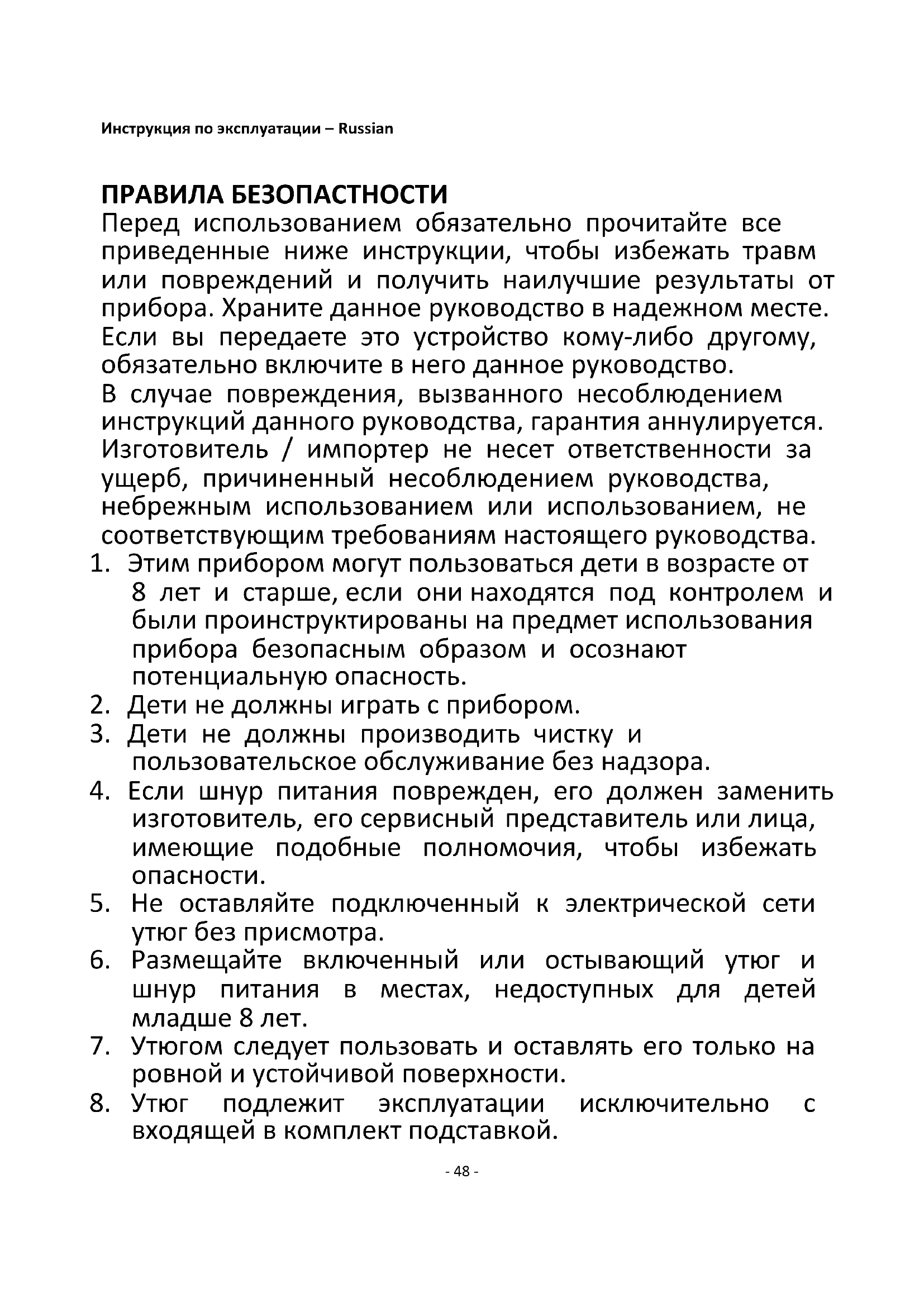 8. Утюг подлежит эксплуатации исключительно с
