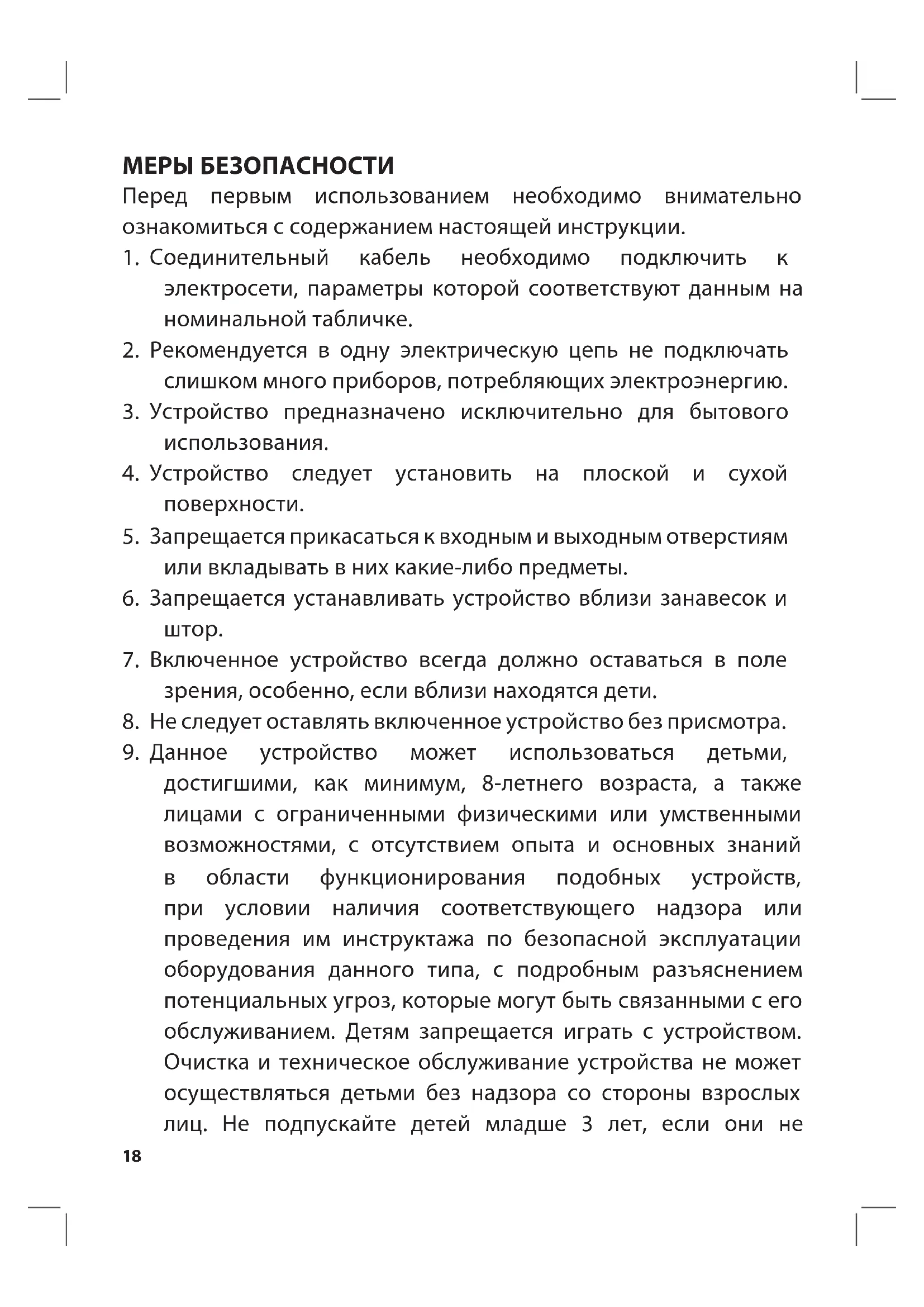 8. Не следует оставлять включенное устройство без присмотра.