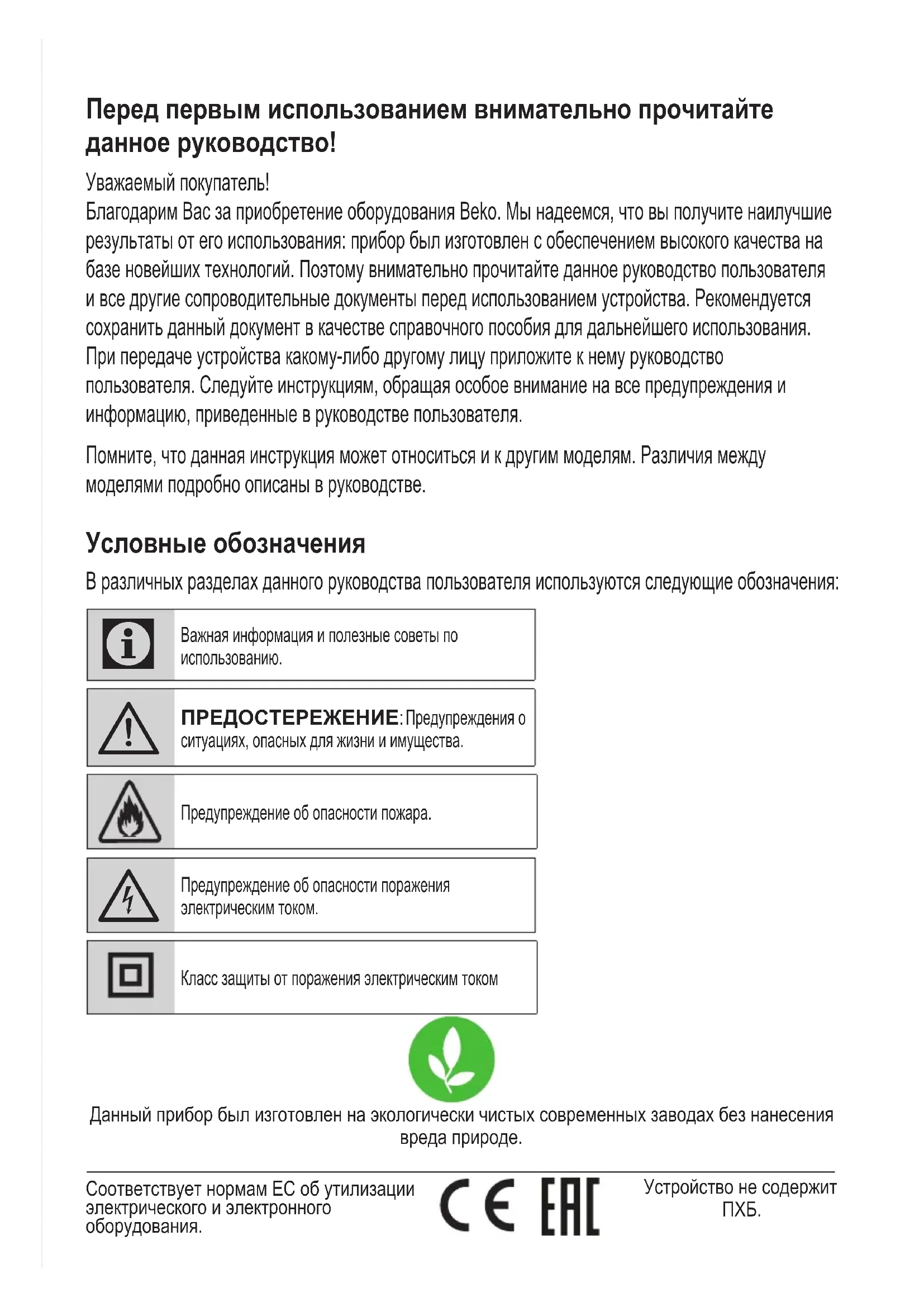 - Продукция Beko соответствует дей