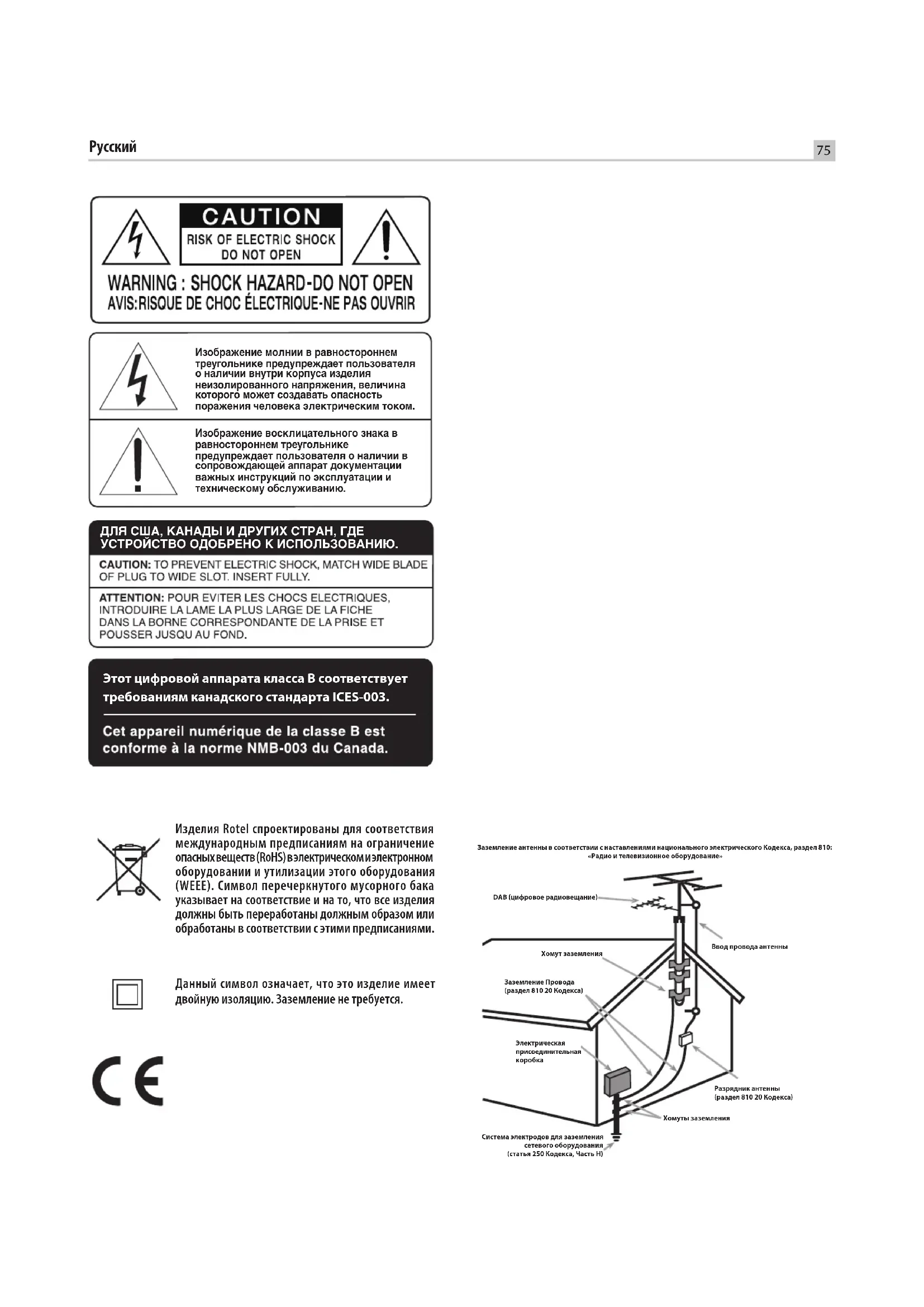 DAB (цифровое радиовещание) Хомут заземления Заземление Провода (раздел 810 20 Кодекса) Электрическая присоединительная коробка Система электродов для заземления сетевого оборудования (статья 250 Кодекса, Часть Н) Ввод провода антенны Разрядник антенны (раздел 810 20 Кодекса) Хомуты заземленияВажные инструкции по безопасности