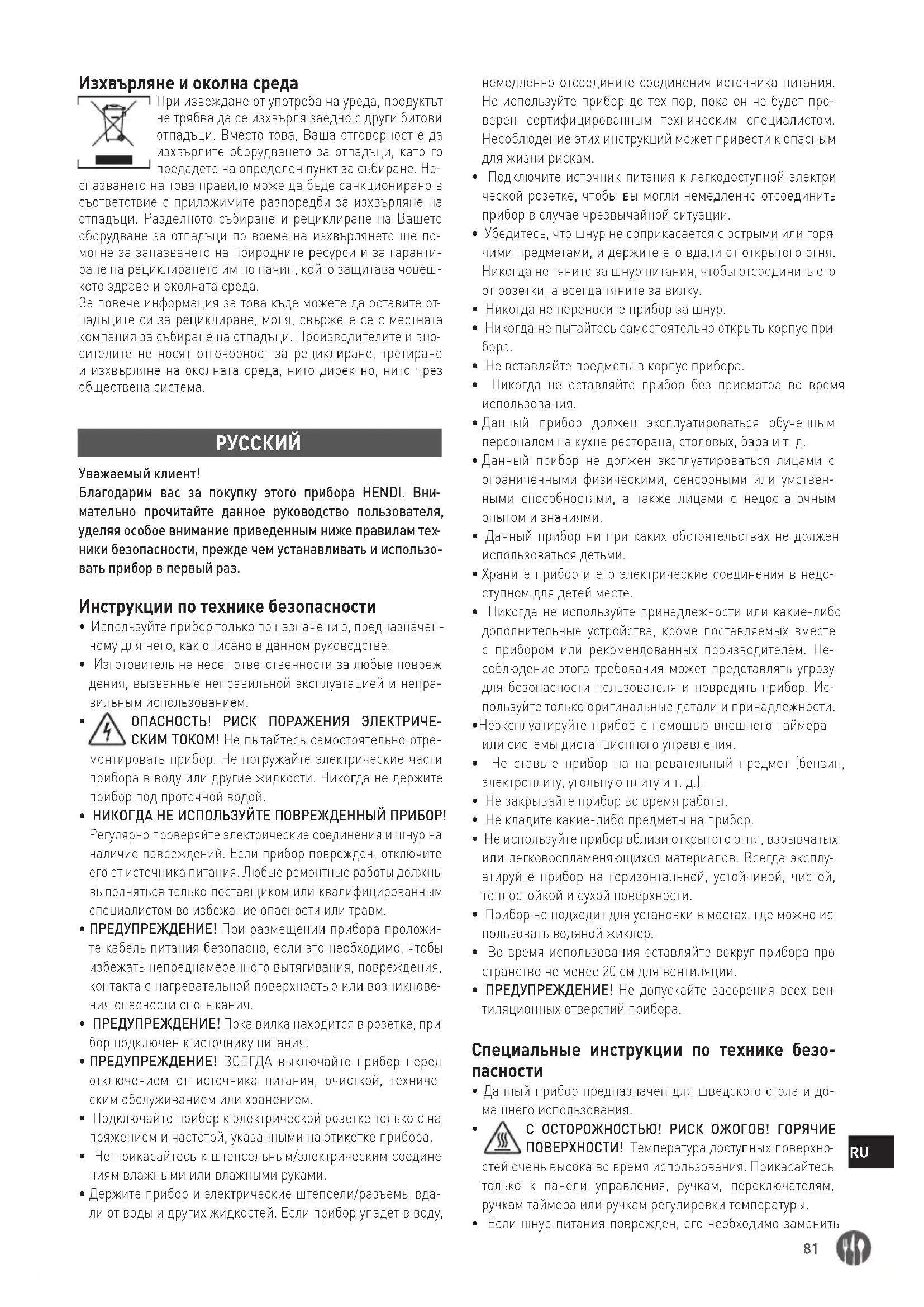 Уважаемый клиент! Благодарим вас за покупку этого прибора HENDI. Вни