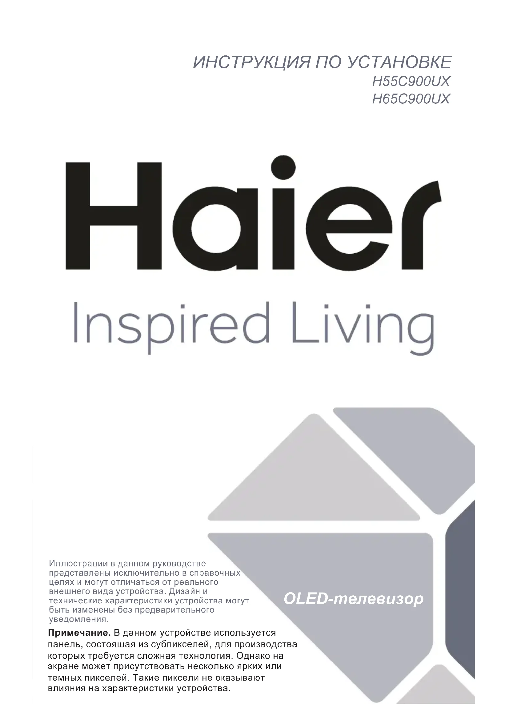 Скачайте инструкцию для вашего Телевизор в формате PDF бесплатно! Найдите своё руководство H65C900UX - HAIER и возьмите своё электронное устройство обратно в руки. На этой странице опубликованы все документы, необходимые для использования вашего устройства. H65C900UX бренда HAIER.