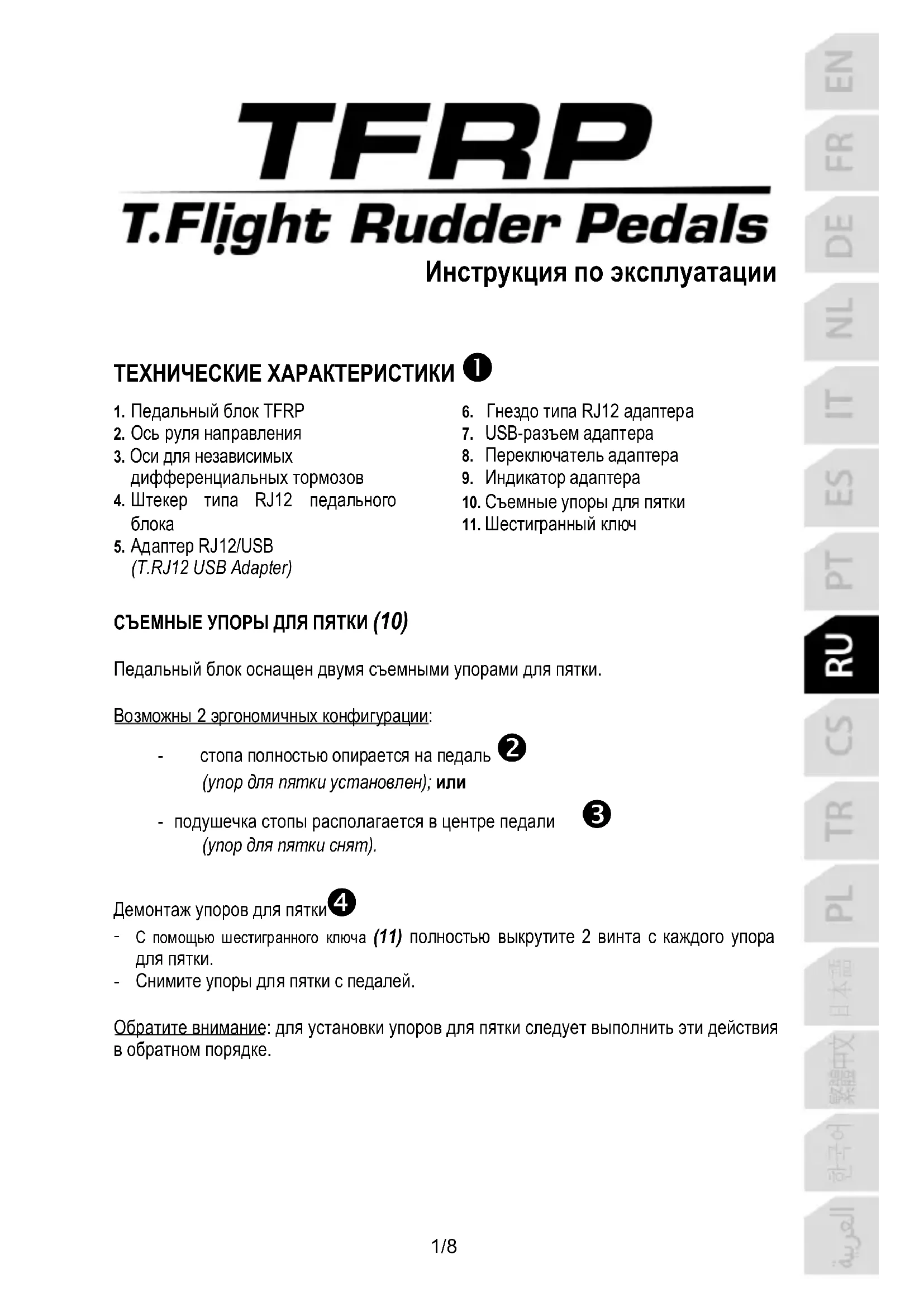 РУКОВОДСТВО ПОЛЬЗОВАТЕЛЯ TFRP TFlight Rudder Pedals THRUSTMASTER