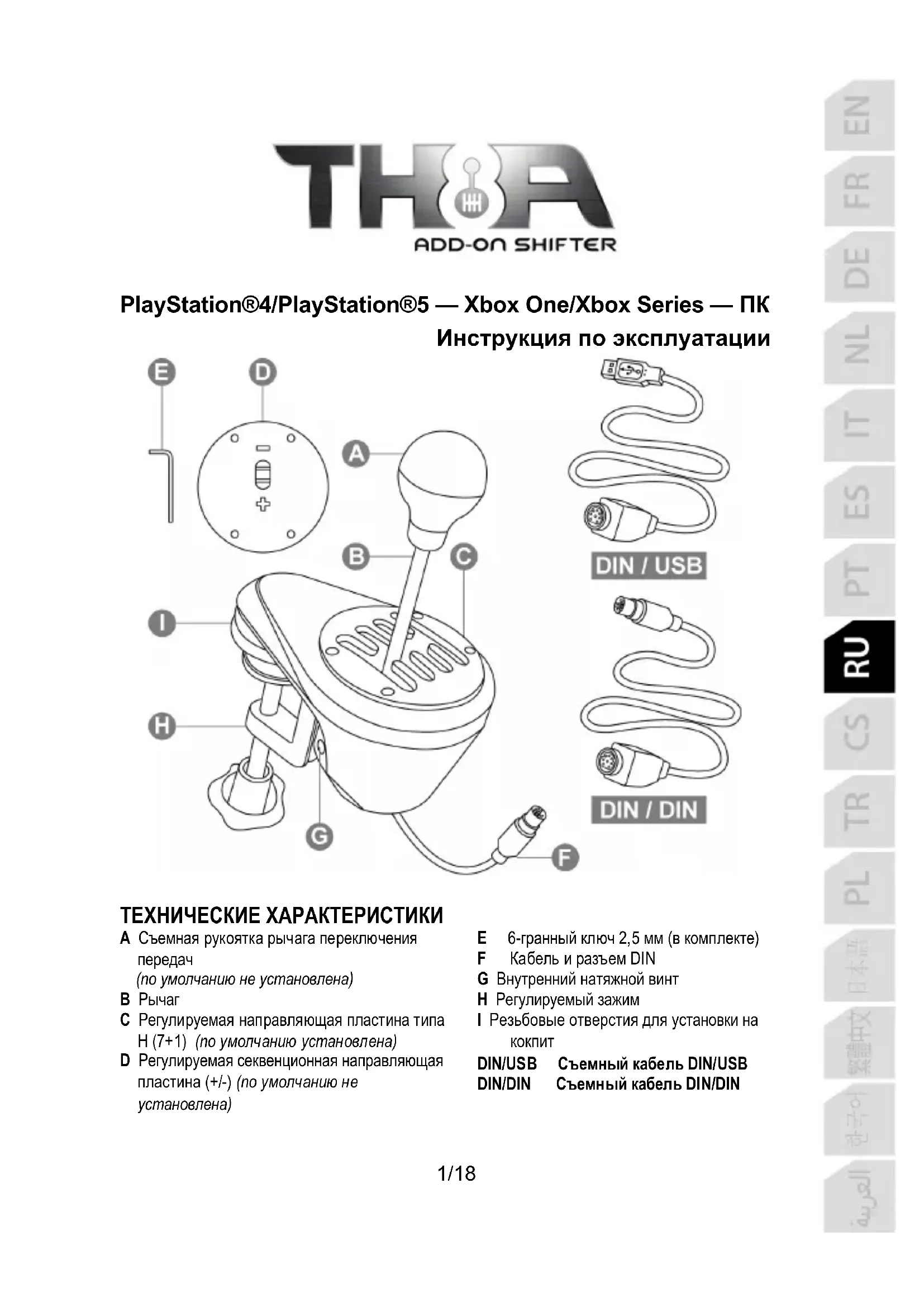 РУКОВОДСТВО ПОЛЬЗОВАТЕЛЯ TH8A Shifter THRUSTMASTER