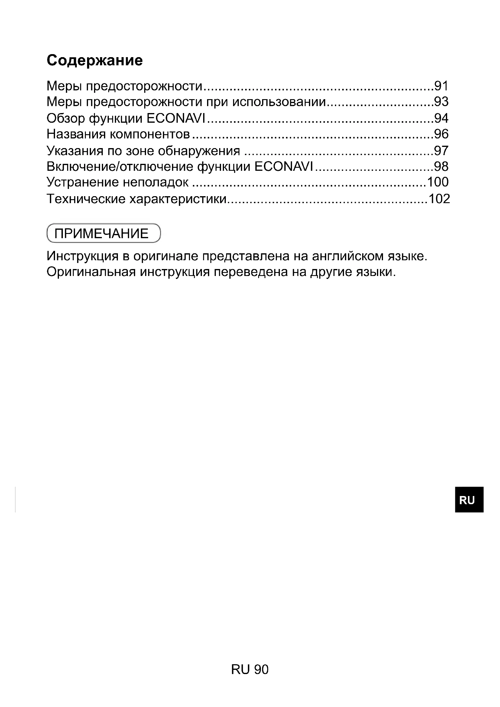 - Не активируйте функцию ECONAVI в помещениях, где находятся только маленькие дети, младенцы или люди с ограниченными возможностями. При слабом движении человека или его отсутствии датчик может посчитать, что человеческая активность отсутствует, и выключить устройство.