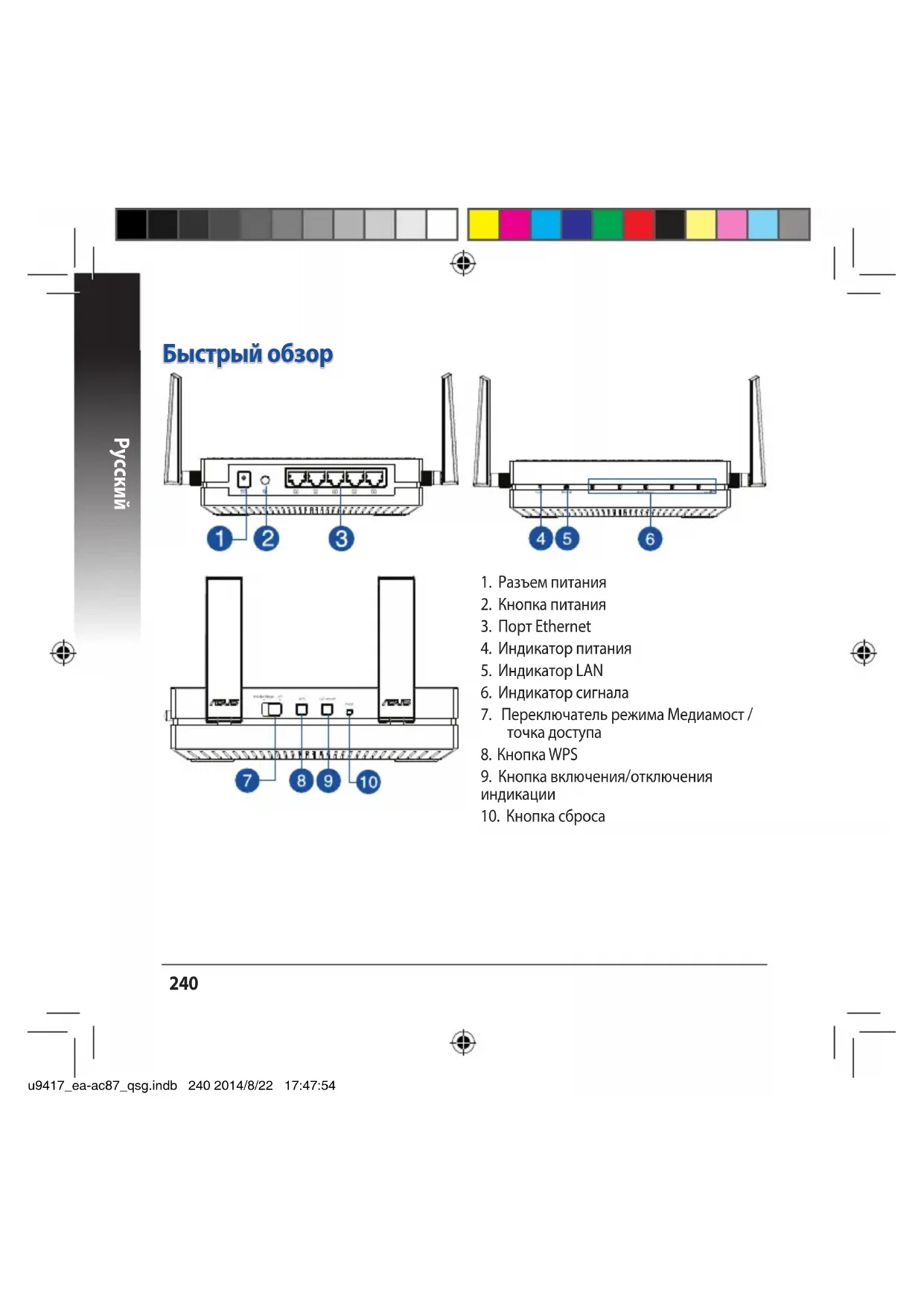 - Подключить EA-AC87 к порту роутера до настройки. u9417_ea-ac87_qsg.indb 249 2014/8/22 17:47:58Русский