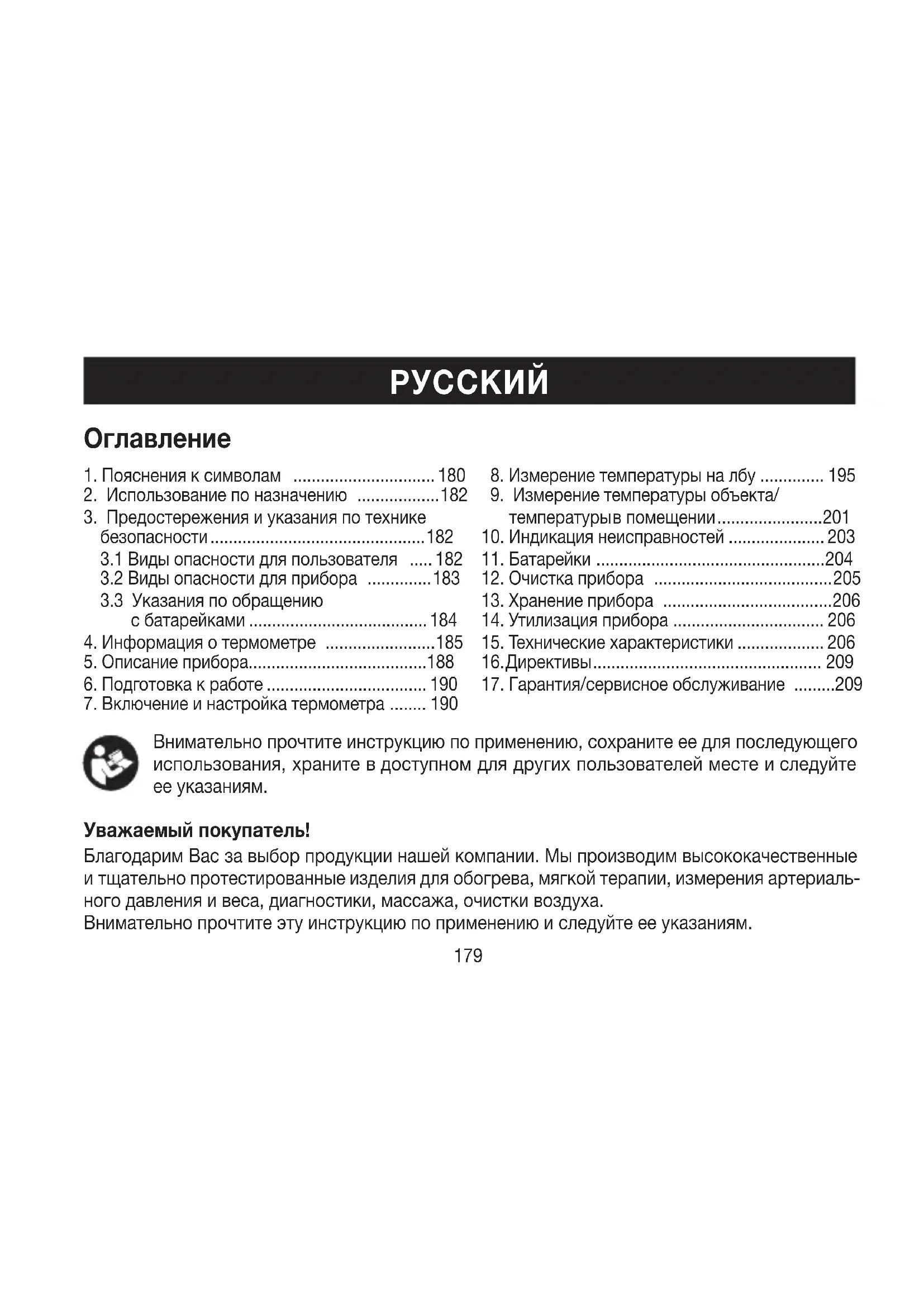 Внимательно прочтите инструкцию поприменению, сохраните еедля последующего использования, храните вдоступном для других пользователей месте иследуйте ееуказаниям. Уважаемый покупатель! Благодарим Вас завыбор продукции нашей компании. Мыпроизводим высококачественные итщательно протестированные изделия для обогрева, мягкой терапии, измерения артериаль- ного давления ивеса, диагностики, массажа, очистки воздуха. Внимательно прочтите эту инструкцию поприменению иследуйте ееуказаниям.