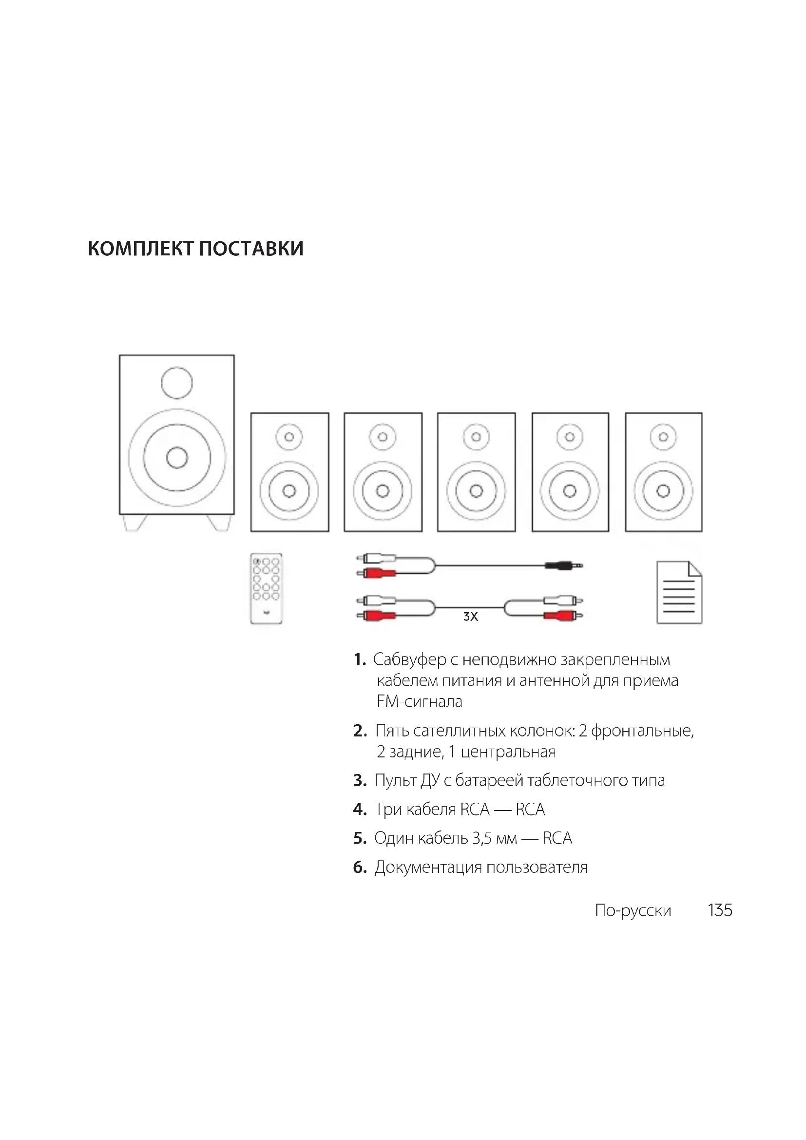 2. Пять сателлитных колонок: 2 фронтальные,