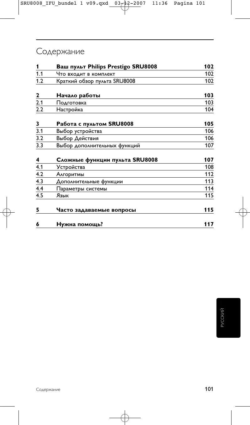 SRU8008_IFU_bundel 1 v09.qxd 03-12-2007 11:37 Pagina 106 Колесико управления является простым в использовании, универсальным средством управления SRU8008: