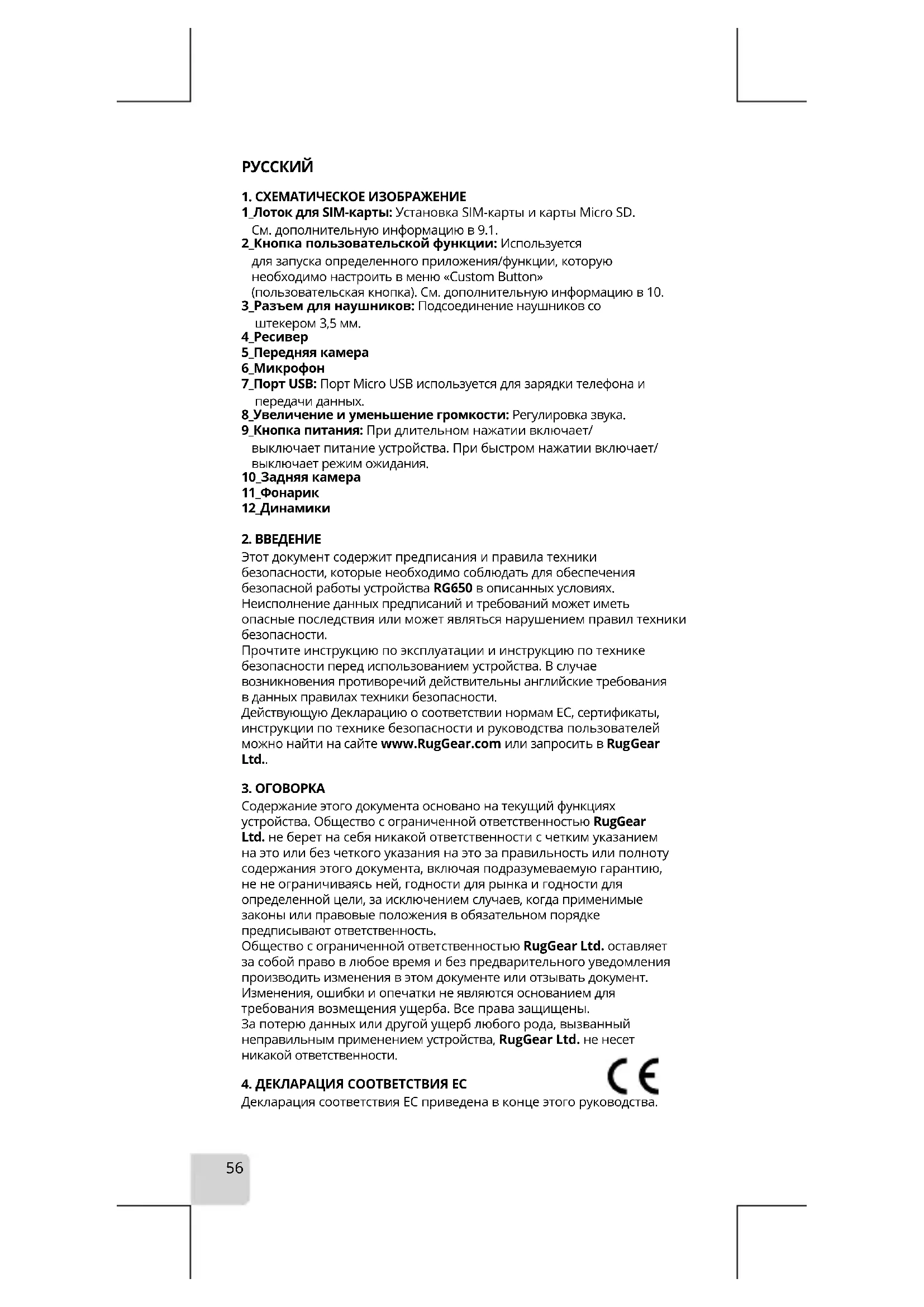 ДeиctbyIoун DeknapaunO COOTBeTcBnH OpmAM EC,ceptuФNKaTbI, INHCTpyKUnn NO TexNKe 6e3OnaCHOCTn n pyKOBoDCTBa nOlb3OBaTeNeIMoXHO NaHTn Ha caTte www.RugGear.com nIN 3anpocntb B RugGear Ltd..