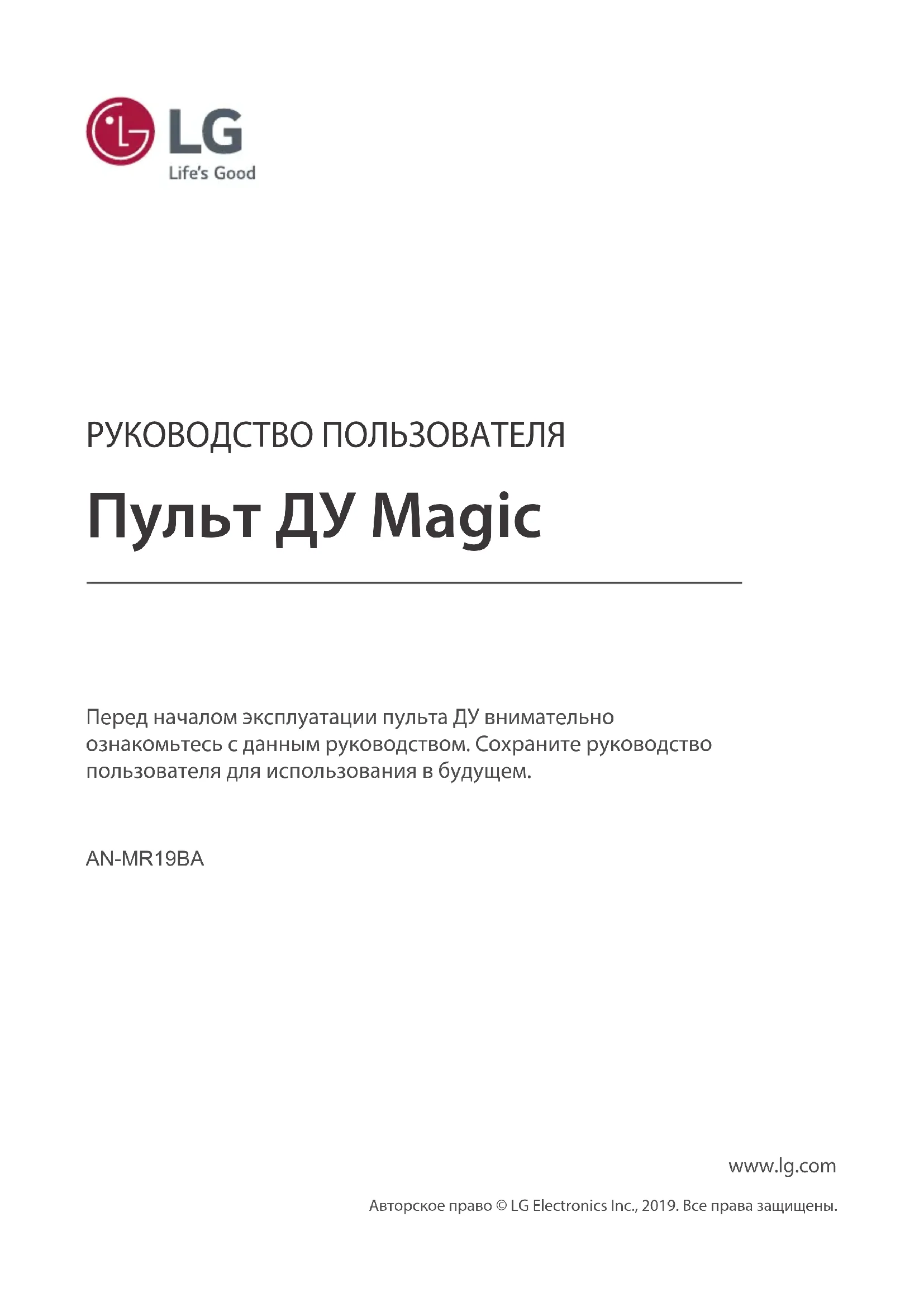 РУКОВОДСТВО ПОЛЬЗОВАТЕЛЯ ANMR19BA LG