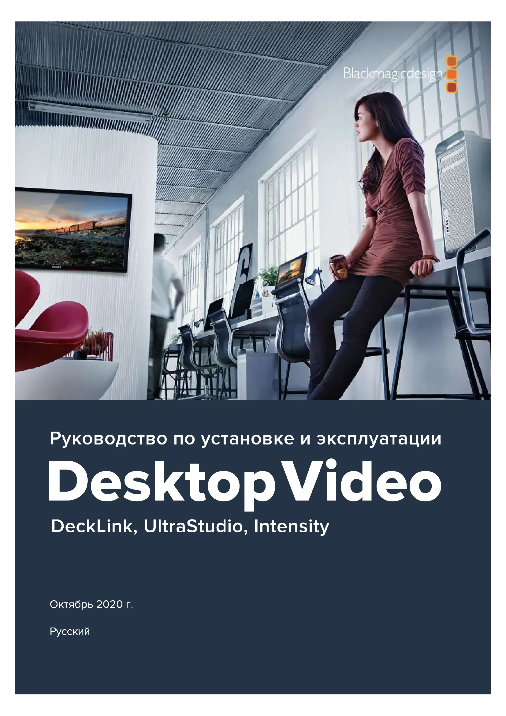 554Руководство по установке и эксплуатации Desktop Video DeckLink, UltraStudio, Intensity Oктябрь 2020 г. РусскийДобро пожаловать! Мы стремимся ктому, чтобы телевидение стало областью настоящего творчества, вкоторой любой профессионал имеет возможность создавать материал самого высокого качества. Если раньше на оснащение студий вещания ипостпроизводства требовались миллионы долларов, теперь соборудованием компании Blackmagic Design стала доступной даже работа вформате Ultra HD 60p. Надеемся, что наши новые продукты, будь то UltraStudio, DeckLink или Intensity, станут незаменимыми помощниками ибудут служить вам втечение многих лет. В данном руководстве содержится вся информация, необходимая для обработки видео спомощью решений Blackmagic Design. Если вы раньше не устанавливали плату PCI Express, рекомендуем обратиться за помощью ктехническому специалисту. Так как наше оборудование поддерживает несжатое видео сбольшим объемом передаваемых данных, вам потребуется высокоскоростной диск имощный компьютер. Процесс установки занимает приблизительно 10 минут. Перед ее выполнением посетите раздел поддержки на нашем веб-сайте www.blackmagicdesign.com/ru, где можно найти последние версии этого руководства ипрограммного приложения. Призагрузке обновлений не забудьте зарегистрировать используемое оборудование BlackmagicDesign, чтобы своевременно узнавать о выходе очередного релиза идобавлении новых функций. Будем рады получить любые отзывы о решениях Blackmagic идаже образцы проектов, выполненных сих помощью. Мыпостоянно работаем над совершенствованием наших продуктов, поэтому ваши отзывы помогут нам сделать их еще лучше! Грант Петти Генеральный директор Blackmagic DesignПодготовка кработе 558 Введение 558 Системные требования 558 Подключение питания 558 Подключение оборудования 559 Установка программного обеспечения Desktop Video 563 Запись ивоспроизведение видео 567 Blackmagic Desktop Video Setup 568 Обзор утилиты Blackmagic Desktop Video Setup 568 Вкладка Video 570 Назначение разъемов на DeckLink Quad 2 574 Вкладка Audio 575 Вкладка Conversions 577 Вкладка About 578 Передняя панель управления намодели UltraStudio 4K Mini 579 Teranex Mini Smart Panel 580 Подключение Teranex Mini Smart Panel 580 Функции Smart Panel 582 Teranex Mini Rack Shelf 582 DaVinci Resolve 583 Интерактивный грейдинг вDaVinci Resolve 583 Редактирование вDaVinci Resolve 584 Работа спрограммами других производителей 585 Adobe After Eects CC 585 Adobe Photoshop CC 587 Adobe Premiere Pro CC 588 Adobe Character Animator CC 593 Final Cut Pro X 594 Avid Media Composer 597 Autodesk Smoke 604 Blackmagic Media Express 610 Обзор Blackmagic Media Express 610 Запись видео- иаудиофайлов 610 Воспроизведение видео- иаудиофайлов 615 Просмотр файлов 617 Видео- иаудиомонтаж на ленту 620 Запись H.265-видео 621 Кодер H.265 622 Запись H.265-видео спомощью UltraStudio 4K Extreme 622 Blackmagic Disk Speed Test 623 Снятие мезонинной платы сDeckLink4K Extreme 12G 626 Восстановление платы DeckLink после прерванного обновления 627 Помощь 629 Информация для разработчиков 630 Соблюдение нормативных требований 631 Правила безопасности 632 Гарантия 633