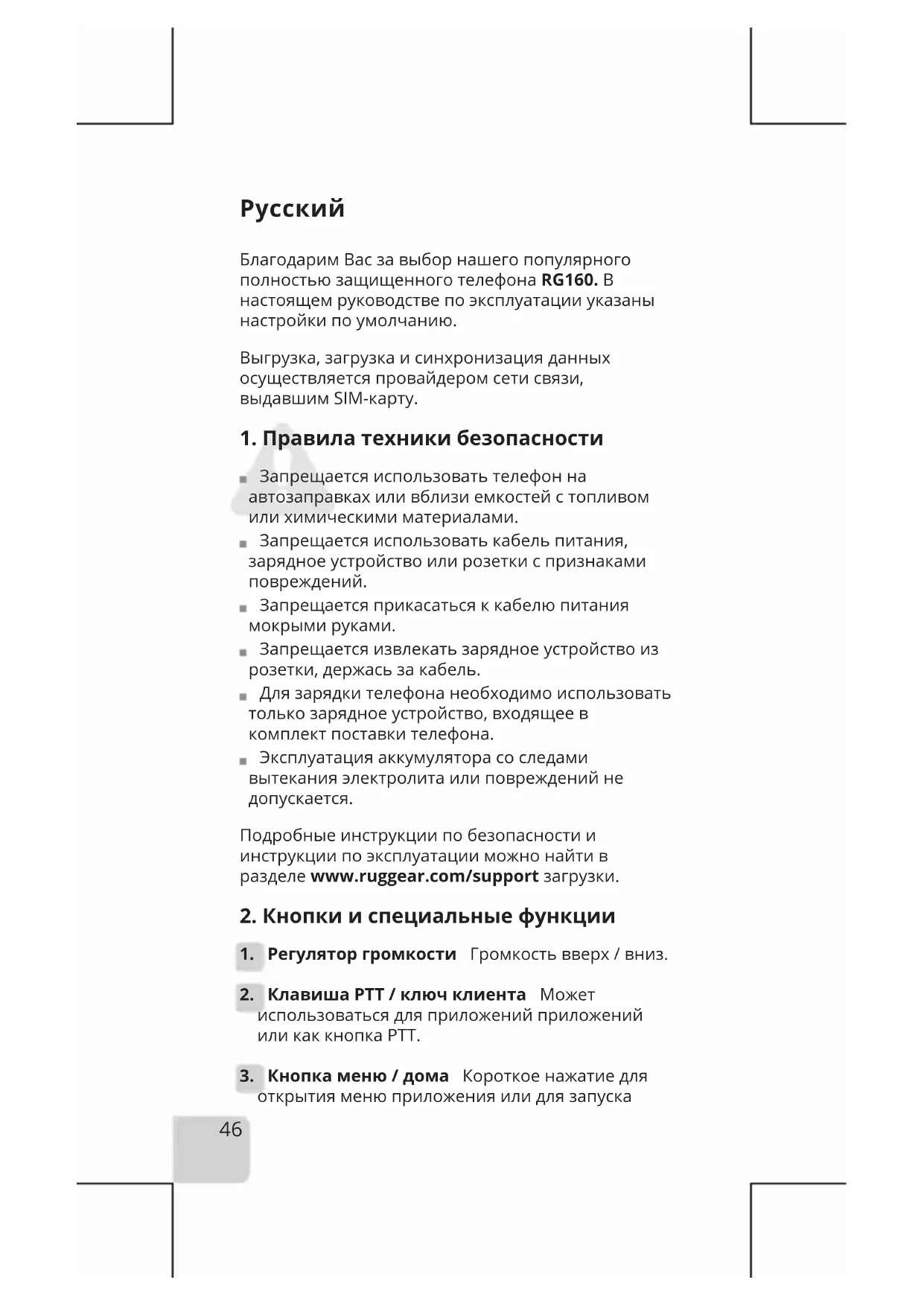 РУКОВОДСТВО ПОЛЬЗОВАТЕЛЯ RG160 RugGear