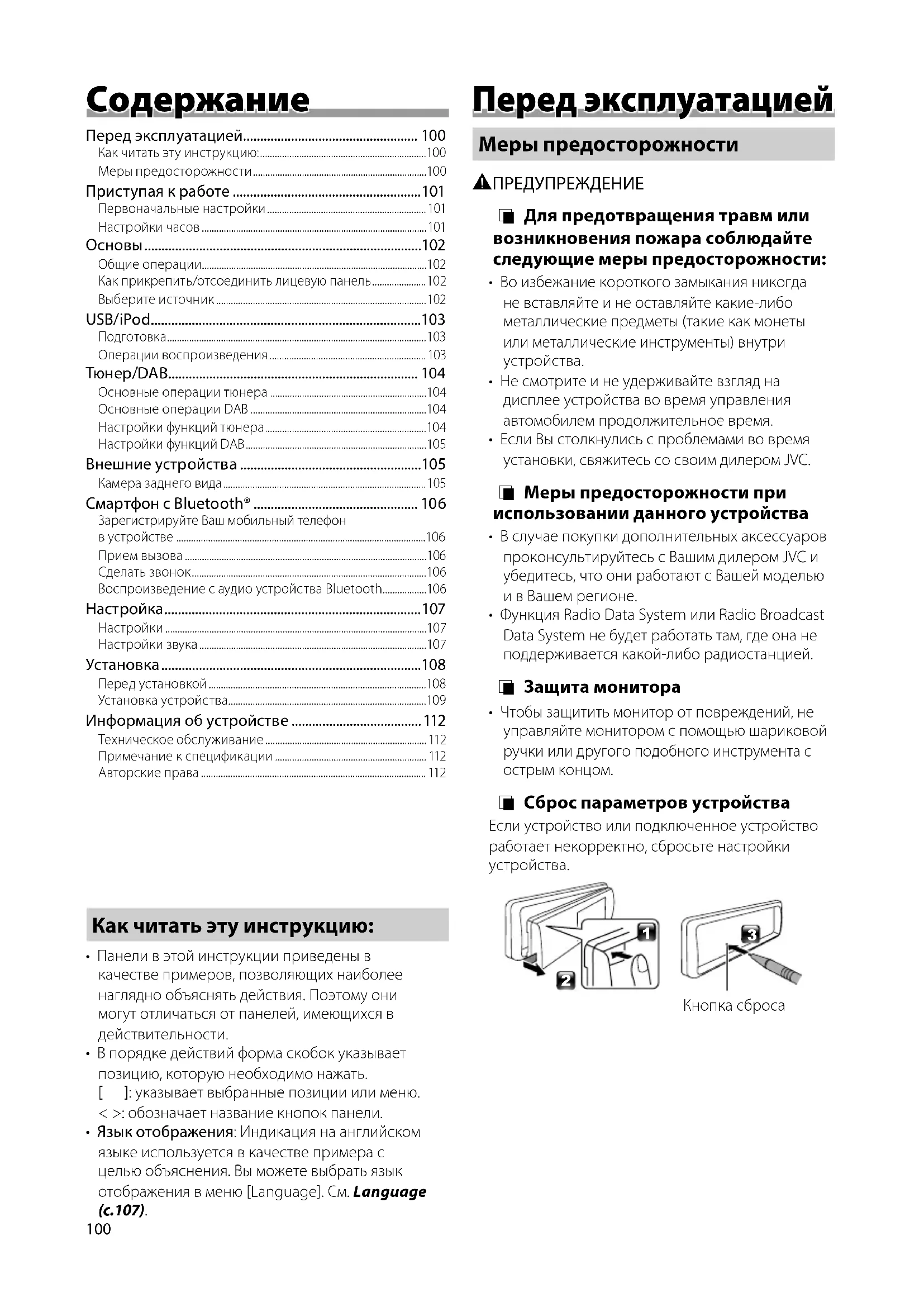 - Если Вы столкнулись с проблемами во время установки, свяжитесь со своим дилером JVC. Ñ Меры предосторожности при использовании данного устройства