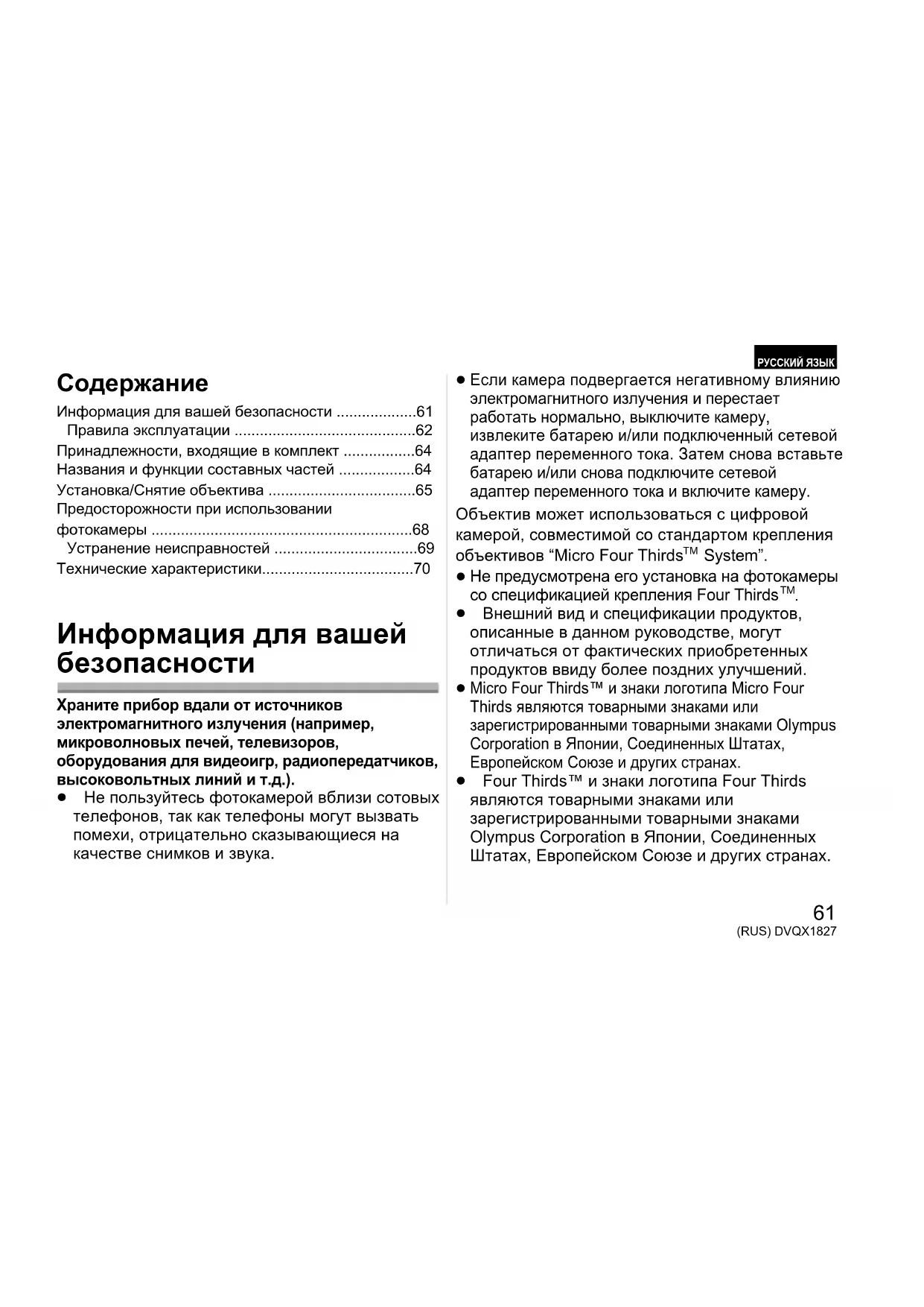 - Micro Four Thirds™ и знаки логотипа Micro Four Thirds являются товарными знаками или зарегистрированными товарными знаками Olympus Corporation в Японии, Соединенных Штатах, Европейском Союзе и других странах.
