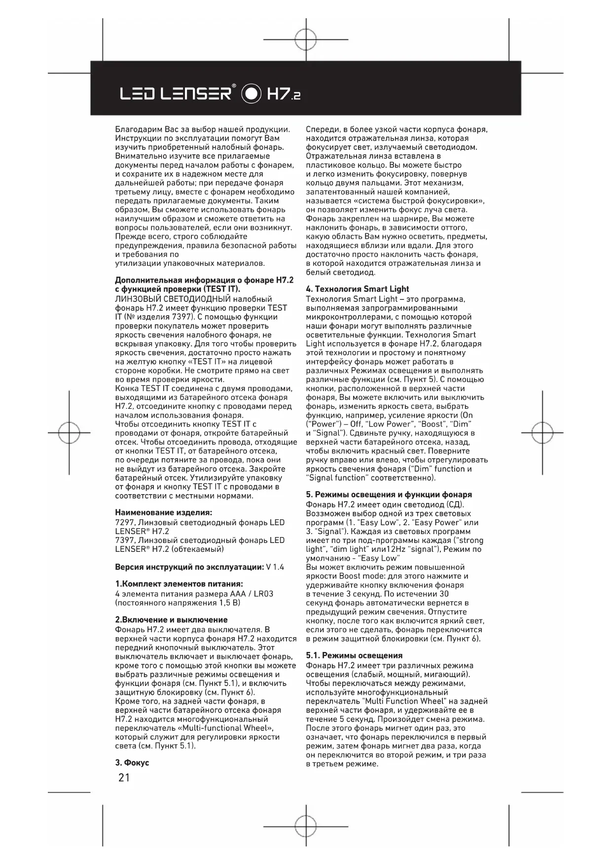 РУКОВОДСТВО ПОЛЬЗОВАТЕЛЯ H7.2 Ledlenser
