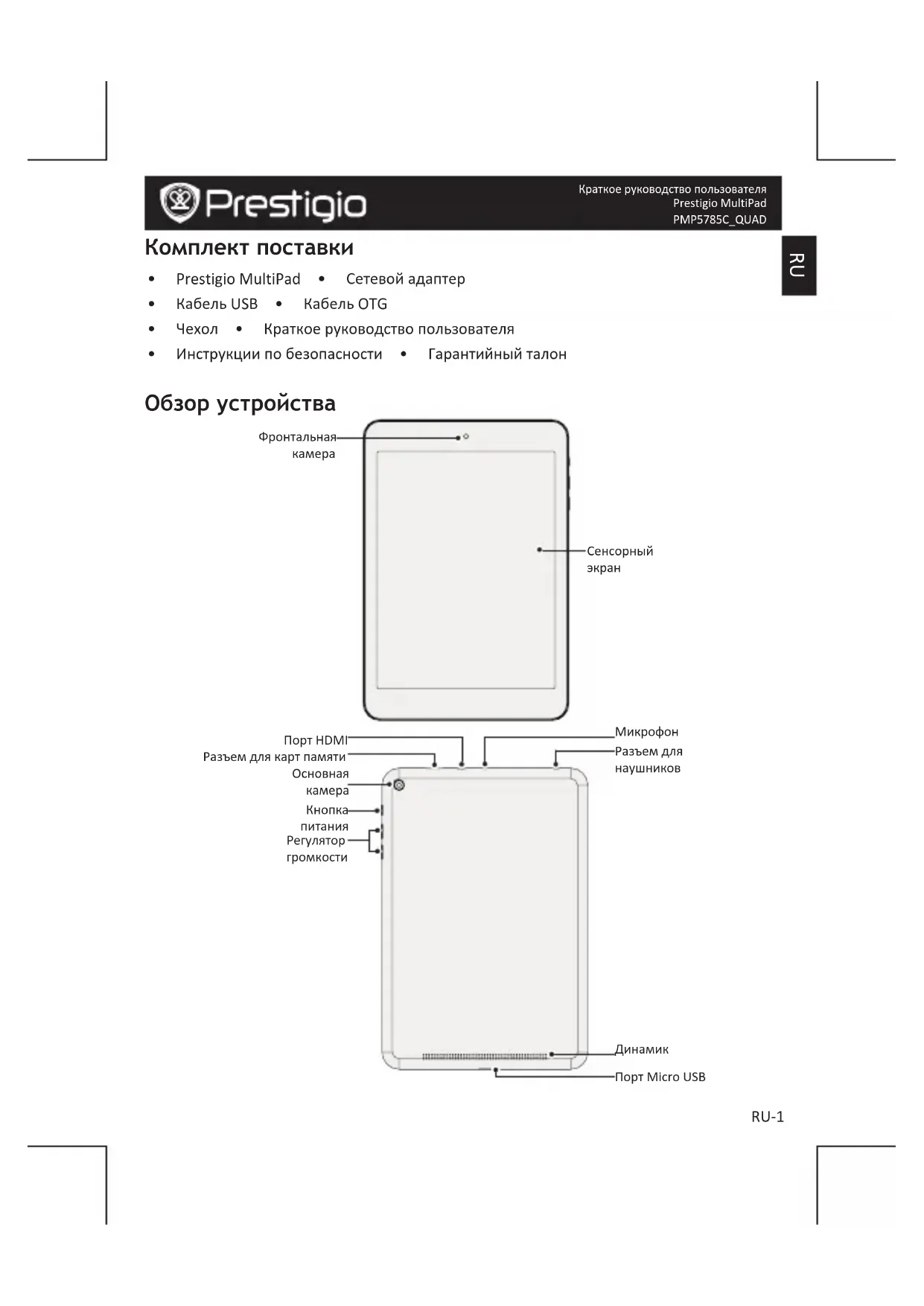 Краткое руководство пользователя Prestigio MultiPad